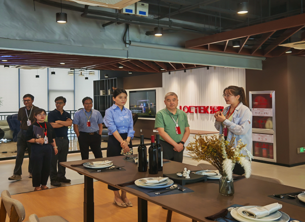 7月23日,章献民一行参观乐歌产品展厅,详细了解其在智慧办公、智能家居等领域的研发与应用情况。座谈会上,乐歌股份人力资源部负责人叶敏介绍了企业发展历程、业务范围以及人才需求,机器人研究院负责人阐述研究院发展现状与科技项目研发进展。校企双方围绕高层次人才双向聘任、科技项目合作、人才培养等展开深入探讨。章献民表示,希望能与乐歌进一步加强合作,将高校科研优势与企业产业资源深度融合,探索智慧物流机器人方面的深入合作,推动成果转化为发展内生动力。