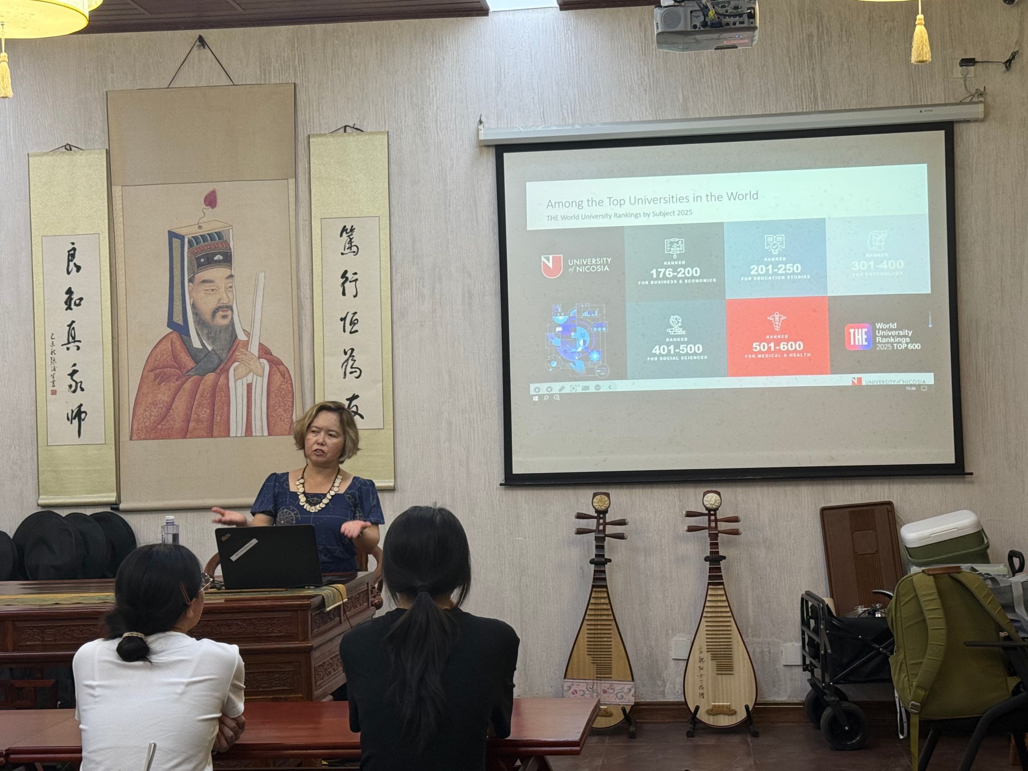 9月25日下午,Yamasaki Patrikiou教授为外语学院学生带来题为“Study Opportunities at UNIC and Europe(在尼科西亚大学和欧洲的学习机会)”的专题讲座。Yamasaki Patrikiou教授以轻松活泼的希腊语互动开场,详细介绍尼科西亚大学的学科优势、国际化环境及欧盟“Erasmus+”交流计划,并重点解读多项奖学金政策。讲座内容丰富、互动热烈,为学生拓宽国际视野、规划海外深造提供了实用信息。