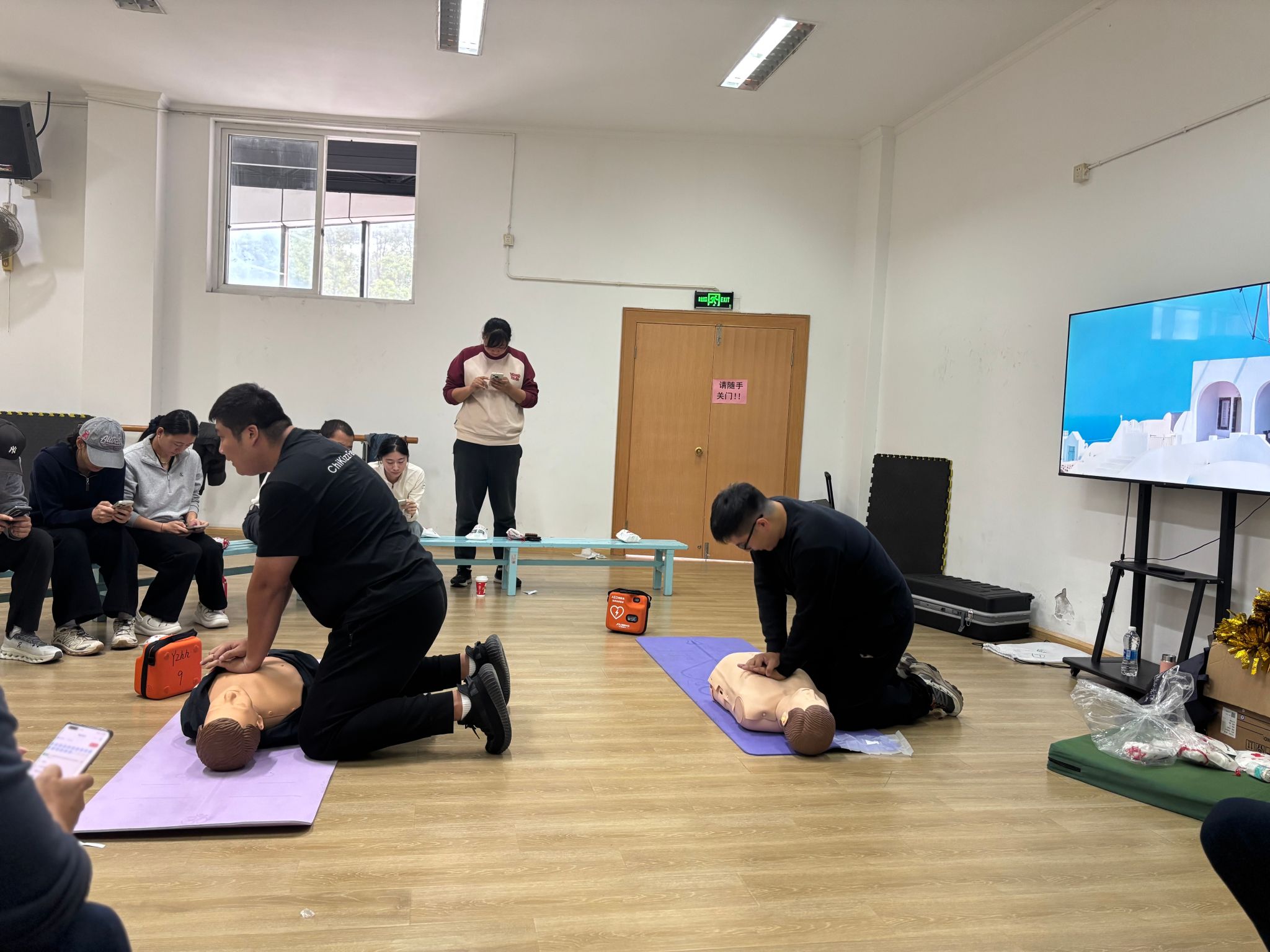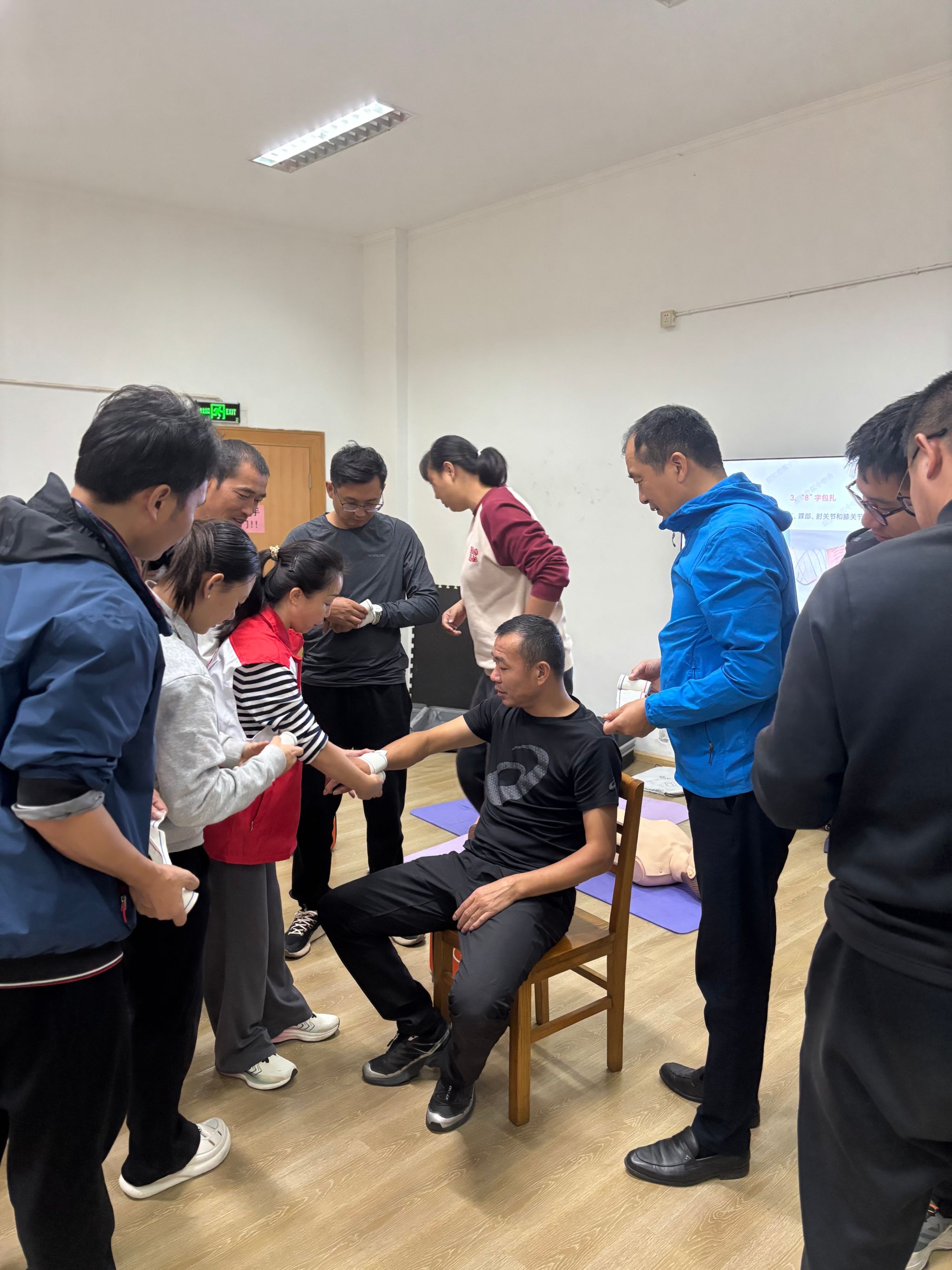 培训中,红十字会认证讲师通过理论讲解与模拟实操相结合的方式,为体育教师们系统梳理了急救响应流程,重点讲解了突发心跳骤停等紧急情况的判断与处理。在心肺复苏环节,讲师逐项演示了胸外按压的深度、频率、手法以及人工呼吸的操作要点,并指导教师们利用培训器材反复练习,确保动作标准、有效。