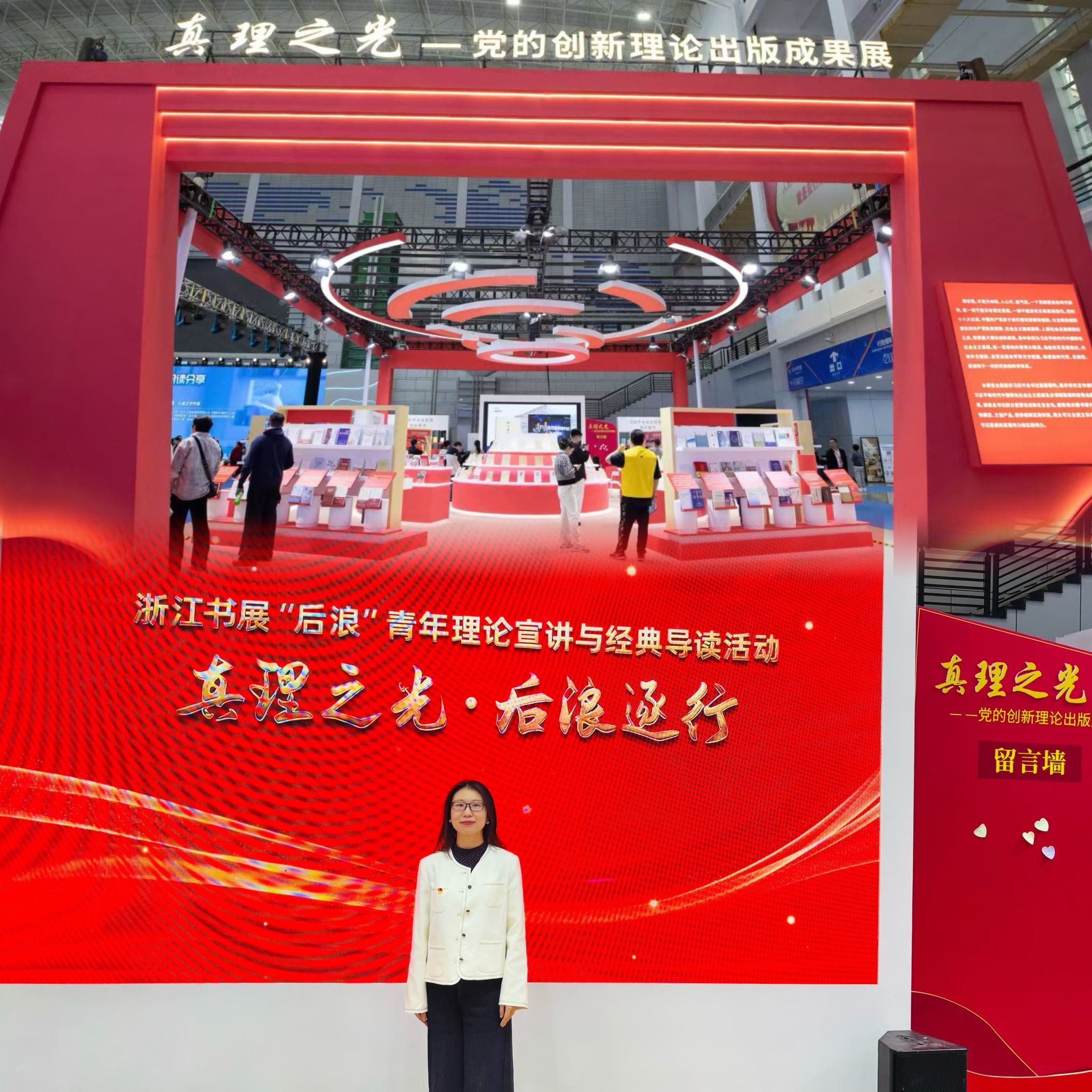 10月24日,我校洪茹菲老师受宁波市委宣传部理论处邀请,在书展“真理之光”主题馆举办的“真理之光·后浪逐行”——“后浪”青年理论宣讲与经典导读活动中进行理论宣讲活动。洪茹菲向现场观众推介了《习近平的七年知青岁月》,用鲜活的故事、自身的经历娓娓道来,讲述了书中青年习近平在梁家河的成长轨迹,也讲述了自己作为一名扎根甬江畔的“新宁波人”的发展轨迹,让党的“初心”不再是抽象的概念,而是可感、可学、可知的行动坐标,受到了现场观众的高度评价。