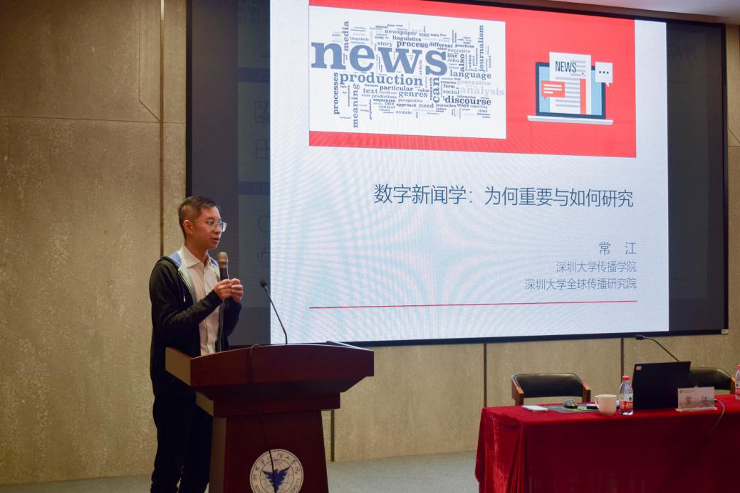 讲座中,常江教授以改革开放的氛围对他学术研究的激励为开头,谈到了何为新闻,新闻学,新闻业以及三者间的关系,回顾了新闻学的十大理论取向和经典新闻学的四个范式。随后,常江教授谈起全球新闻实践新趋势,引用多个案例说明当代新闻的数字化、平台化和情感化转向。最后,常江教授从全球脉络和中西比较两个方面介绍了数字新闻的概念体系。