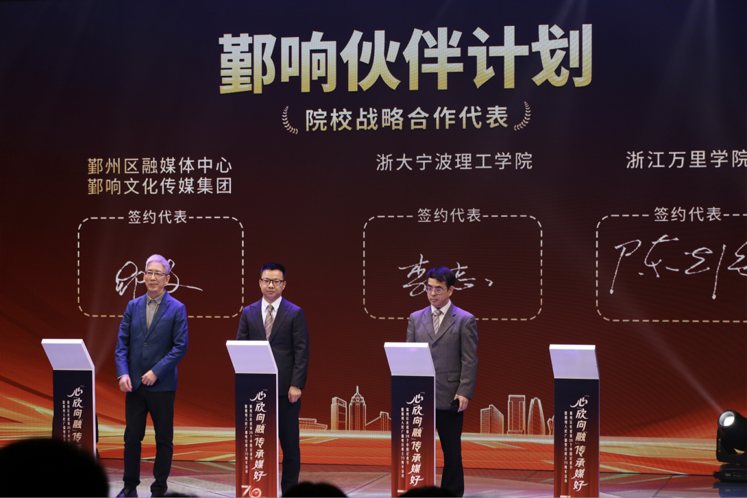 活动现场,鄞响伙伴计划正式启动,李志院长代表浙大宁波理工学院上台与鄞响传媒集团签署院校战略合作协议,校地合作开启新篇章。