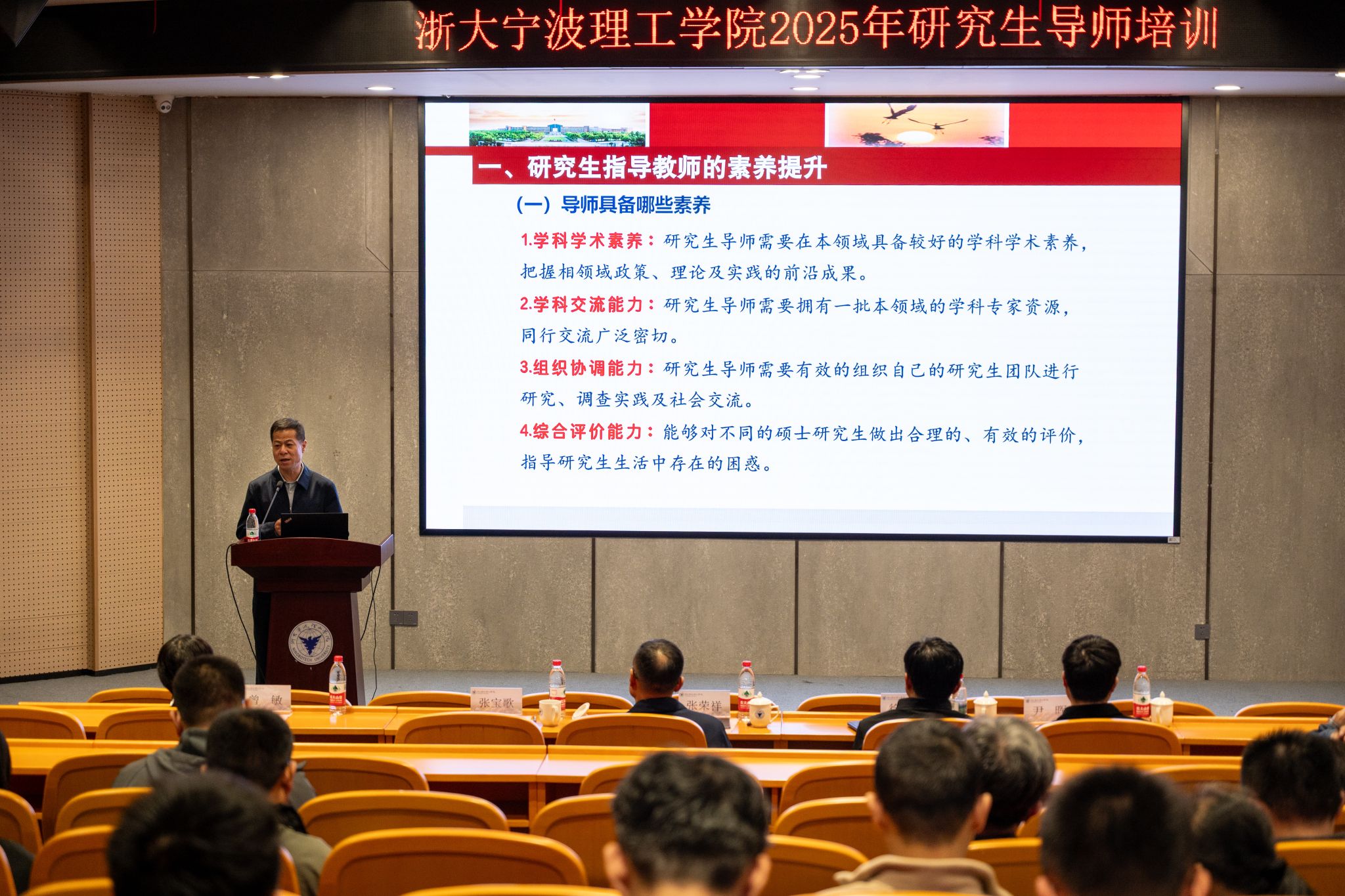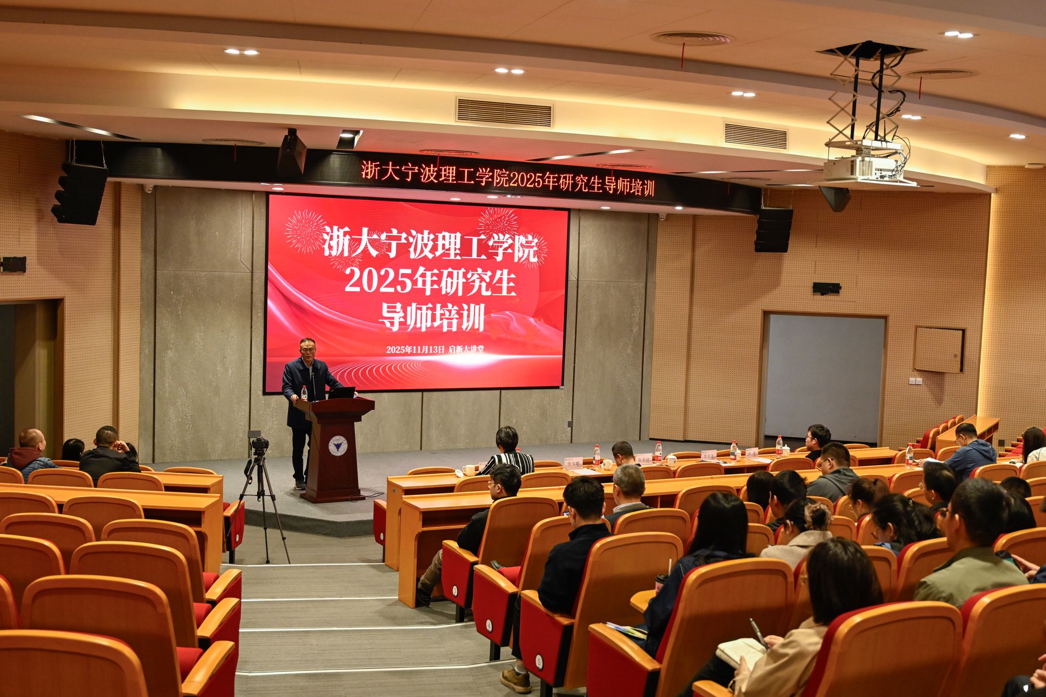 11月13日下午,学校召开2025年研究生导师培训会。学校副校长张荣祥出席并讲话,宁波大学教师教育学院院长张宝歌教授作专题讲座,全校导师、学院分管负责人等130余人参加会议。