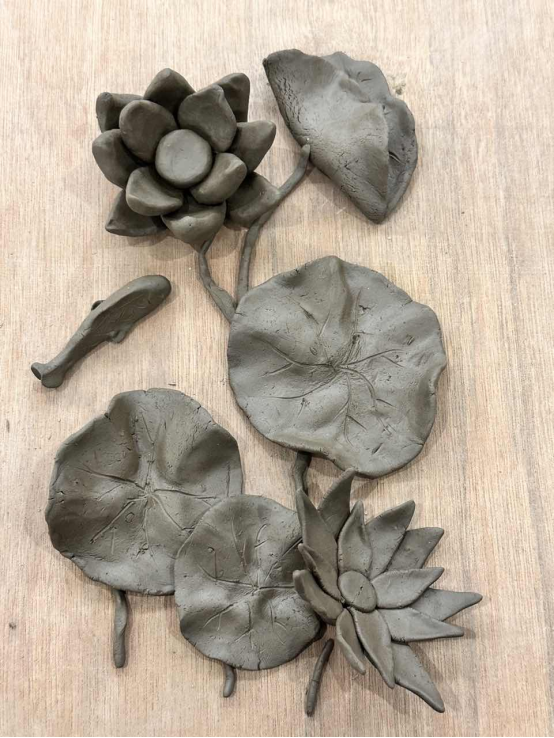 随后,非遗传承人朱老师现场展示了泥塑技艺。一团普通的泥土在他手中几经揉捏、拍打、塑形,短短几分钟便化作一片片精致的荷叶,精湛的技艺赢得了学员们阵阵掌声。朱老师鼓励大家:“泥塑无定法,用心感受、大胆尝试,每个人都能做出有温度、有个性的作品。”