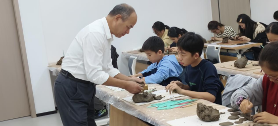 学员们有序领取了泥塑工具套装与各色泥料,迫不及待地开启了首次创作体验。教室里瞬间热闹起来,搓泥声、笑声、请教声交织在一起。有的学员专注地练习揉泥排气,有的尝试捏制简单的几何形状,还有的围着老师询问塑形技巧。朱老师穿梭在学员中间,耐心指导每一个动作,纠正每一处细节,手把手带领大家感受泥土的可塑性。“第一次接触泥塑,感觉很奇妙,泥土在手里很听话,跟着老师做的时候特别有成就感!” 一位学员兴奋地分享自己的初体验。