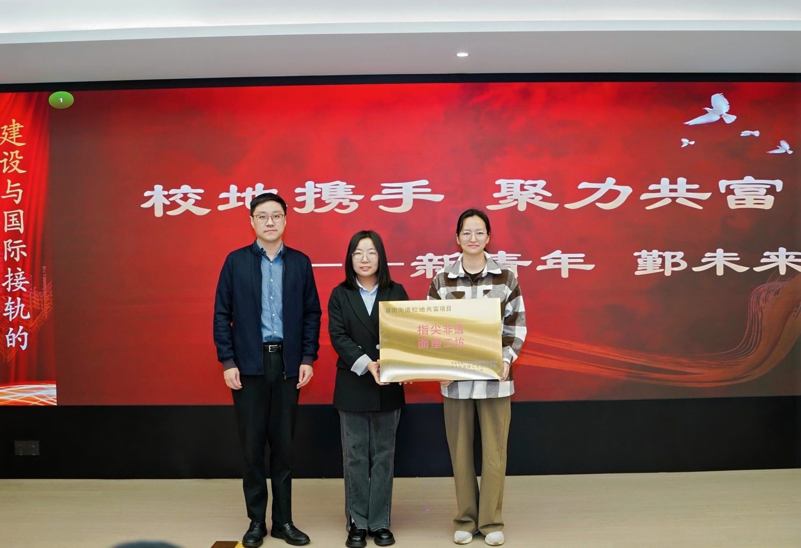 随后,首南街道为校地共富工作室“指尖非遗面塑工坊”揭牌。该工作室将作为实体化运营平台,依托商学院的学术资源与人才优势,结合首南街道的产业基础与发展需求,重点聚焦创新创业孵化、人才培养与社会服务,打造推动区域共同富裕的“前沿阵地”。