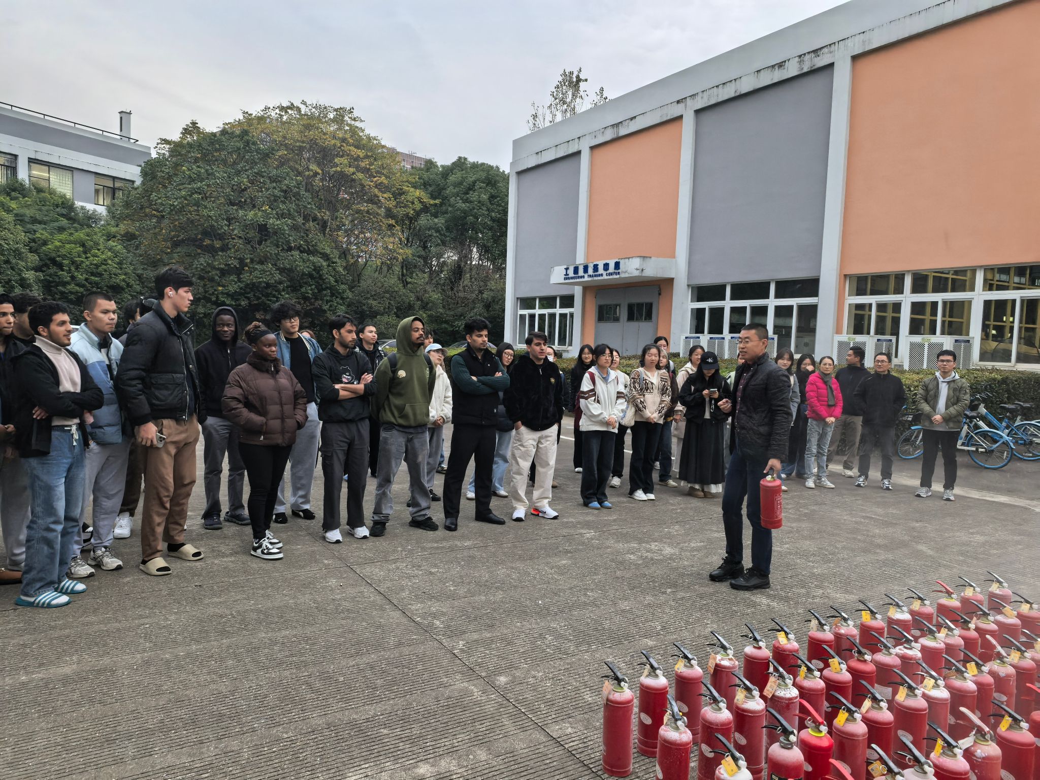 为切实增强师生消防安全意识,提升应急避险与自救能力,2025年11月24日下午,外国语学院与国际教育学院联合组织开展消防疏散演练活动。本次演练在外语实验室模拟火情逃生和灭火实战演习。