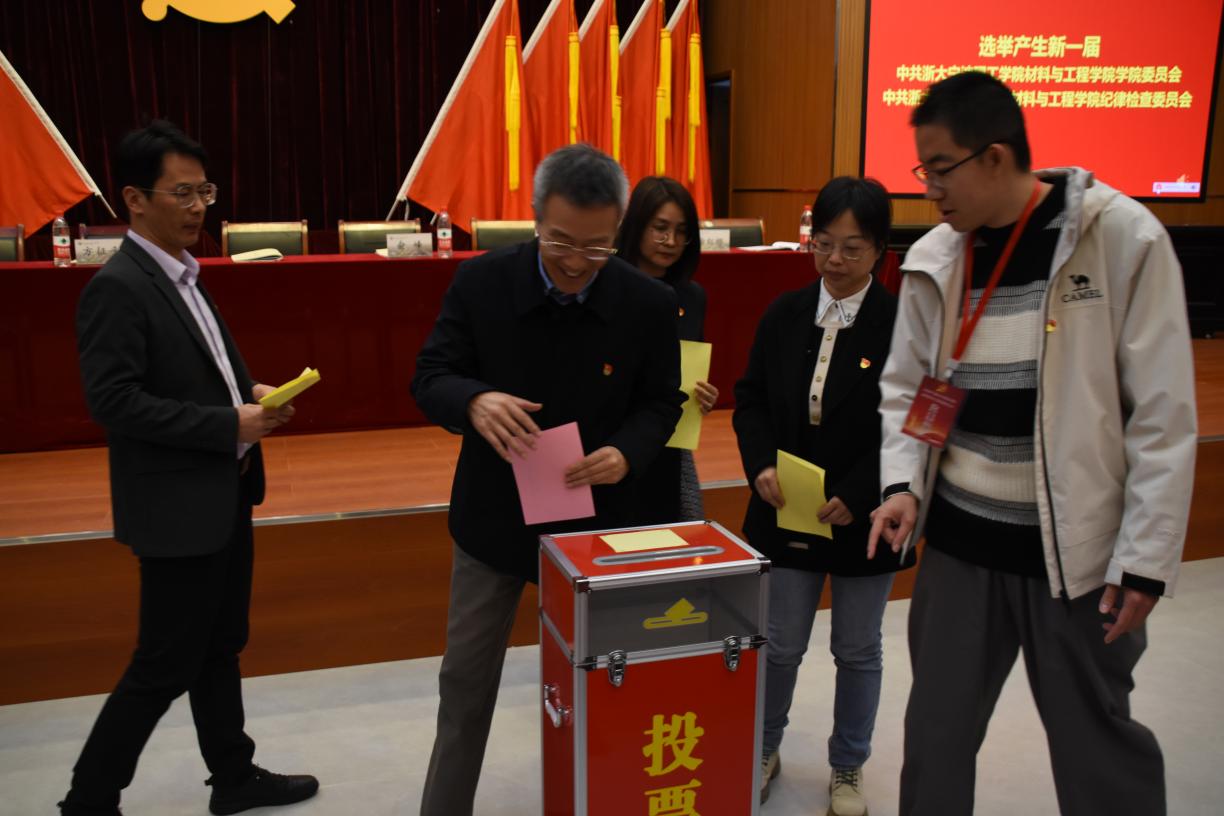 按照选举办法和程序,大会以无记名投票方式差额选举产生了新一届党委委员和纪委委员。马利文、王维燕、包静昇、杨勇、陈飞、俞峰、徐红娜(按姓氏笔画排序)7位同志当选为中共浙大宁波理工学院材料科学与工程学院委员会新一届委员;马利文、王海桥、周赛春(按姓氏笔画排序)3位同志当选为中共浙大宁波理工学院材料科学与工程学院纪律检查委员会新一届委员。