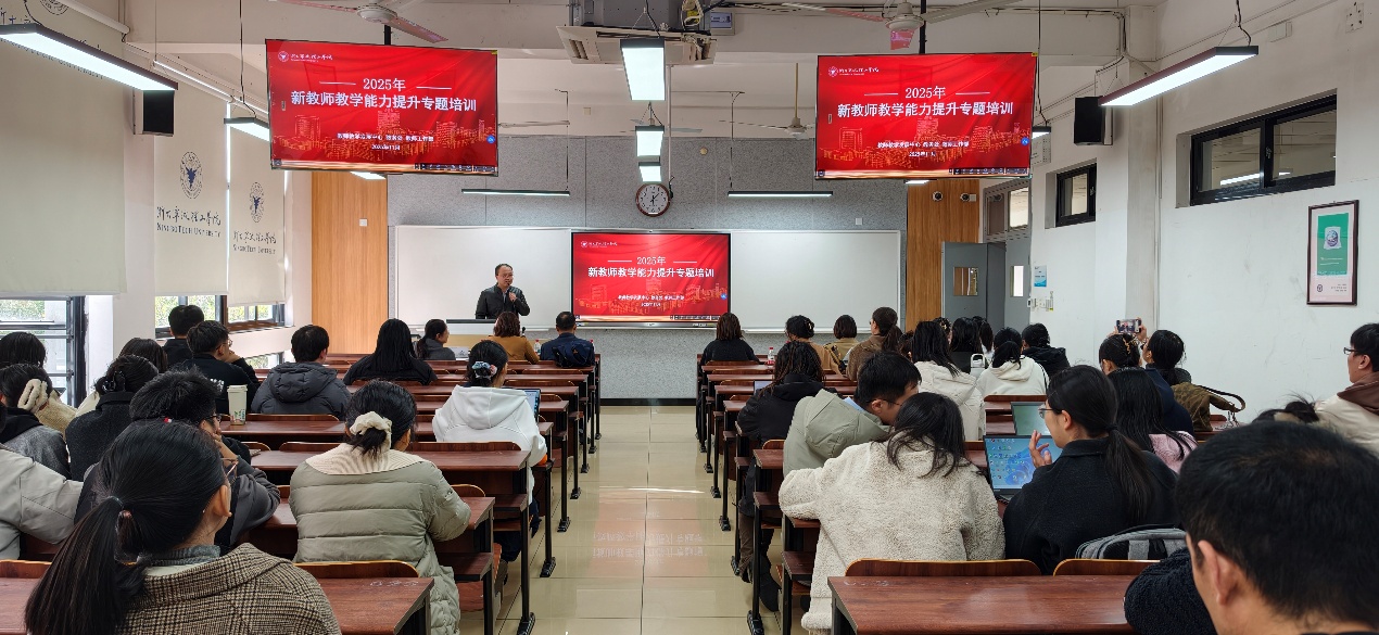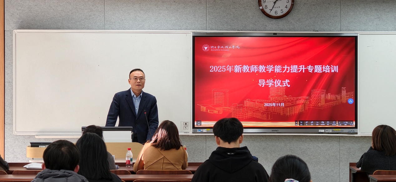 11月27日下午,2025年新教师教学能力提升专题培训导学仪式暨教学沙龙在北教学区NB206教室顺利举行。学校副校长张荣祥、教务处处长兼教师教学发展中心主任沈昊宇、教师工作部相关负责人以及全体新入职教师参加活动。