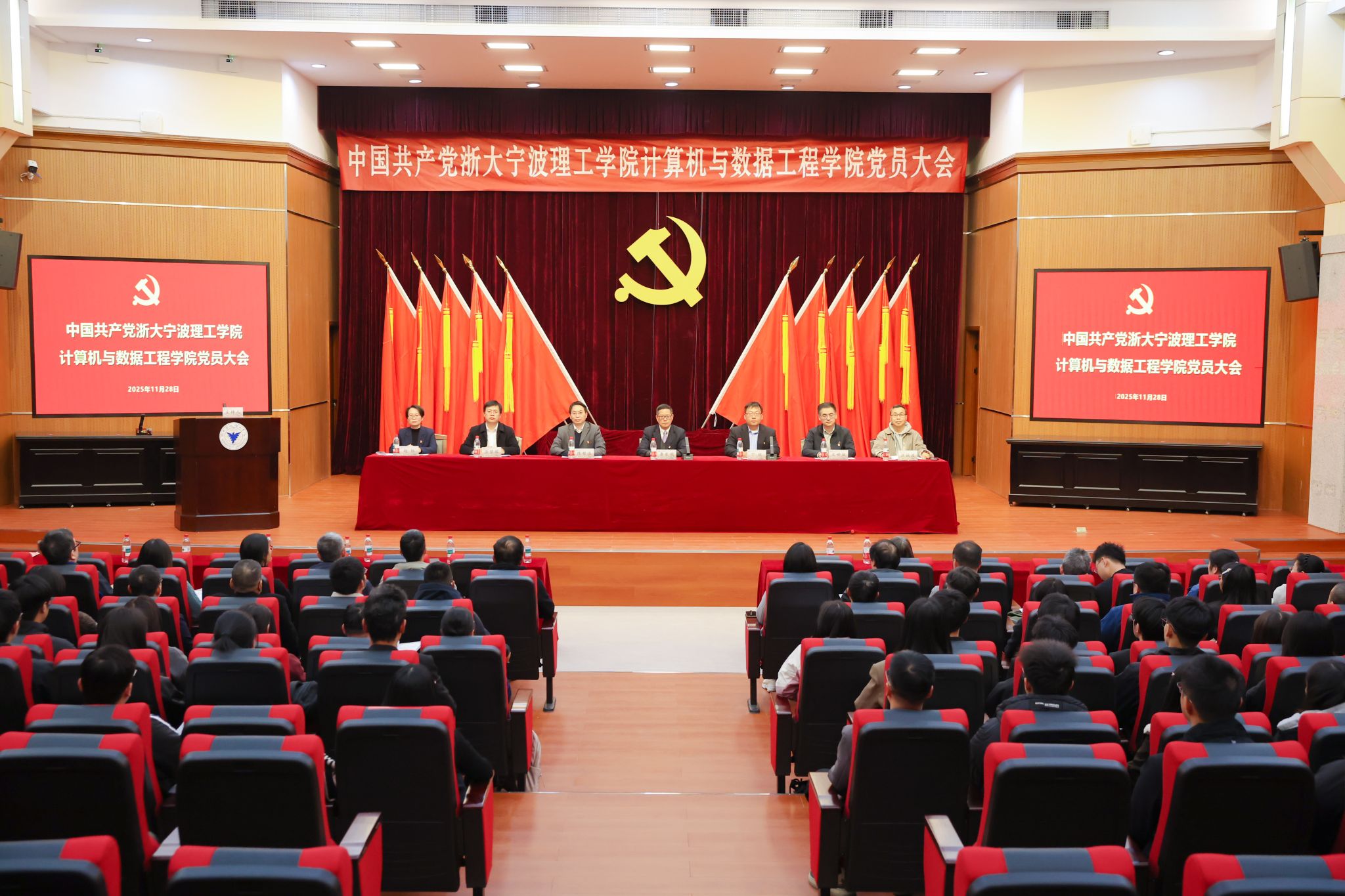 11月28日,中国共产党浙大宁波理工学院计算机与数据工程学院党员大会在金宗城法学教学中心举行。学校党委委员、副校长鲁东明出席大会。会议由学院党委副书记赵红主持,学院全体师生党员参加会议。