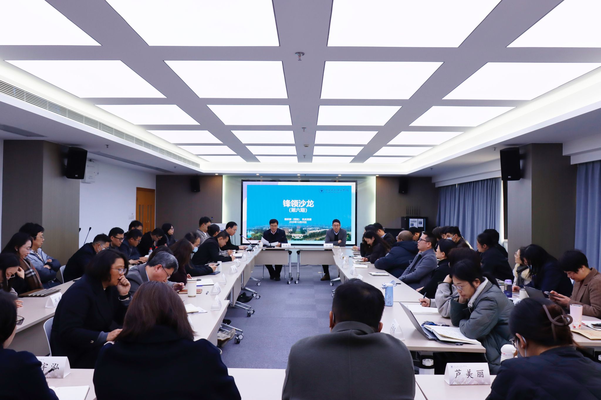 12月5日上午,学校第六期“锋领沙龙”在行政楼606会议室举行。本期活动邀请6位挂职锻炼、脱产培训的干部作交流,旨在通过经验分享与思想碰撞,深化学习成果转化,拓展工作视野,激发干部队伍内生动力。学校党委副书记杨国富出席活动并讲话,组织部相关负责人及50余名干部教师参加。