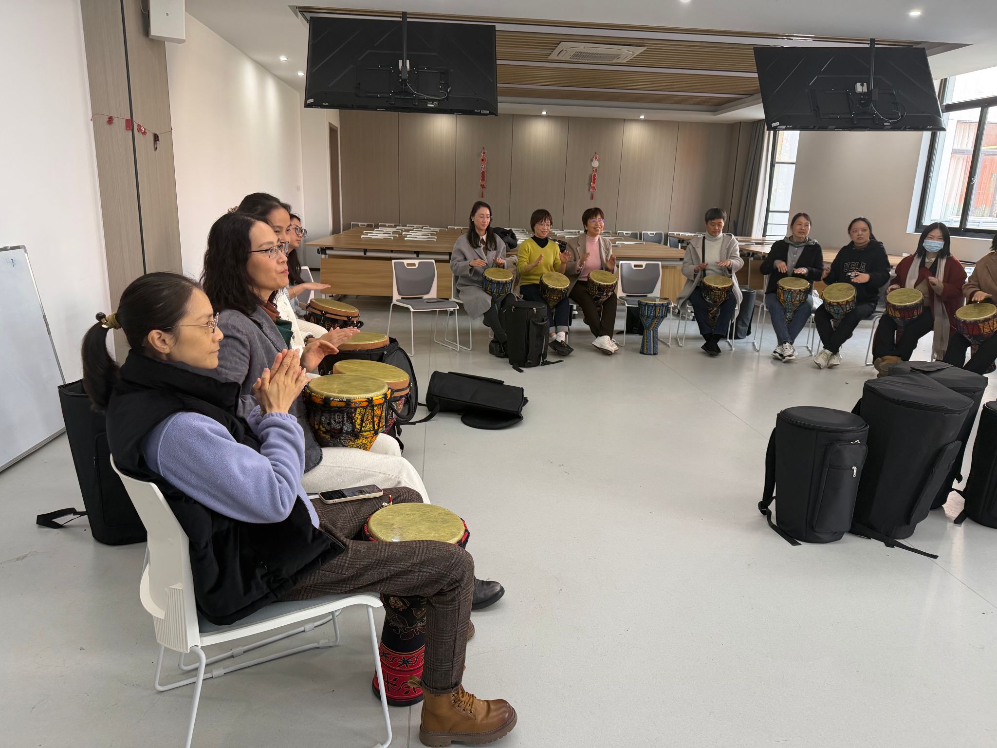 “原来非洲手鼓不仅有‘传统范儿’,还能玩出‘潮流感’,这种双重魅力太吸引人了!” 刚体验完节奏与鼓点的老师兴奋地说。“没想到第一次打手鼓就能完整演奏一首曲子,这种成就感太棒了!”学生参与者也异常开心。