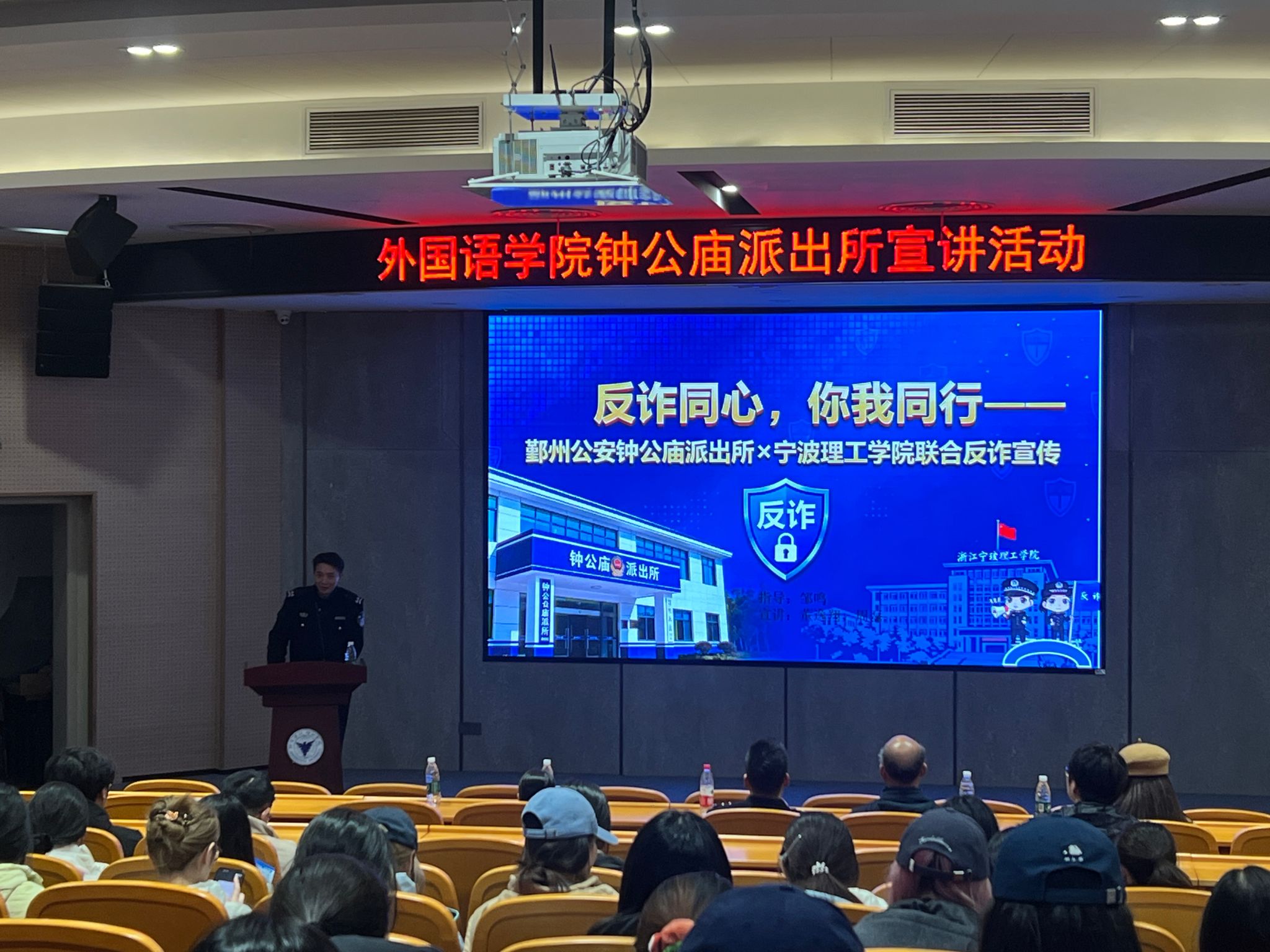为提升师生反诈防骗意识和自我保护能力,12月下旬,浙大宁波理工学院外国语学院联合钟公庙派出所,以“宣讲+互动问答”的创新形式开展反诈宣传活动,此次活动是警校双方党建联建的重要实践,也是创新校园安全教育形式的一次有益探索,近300名师生参与活动,反响热烈。
