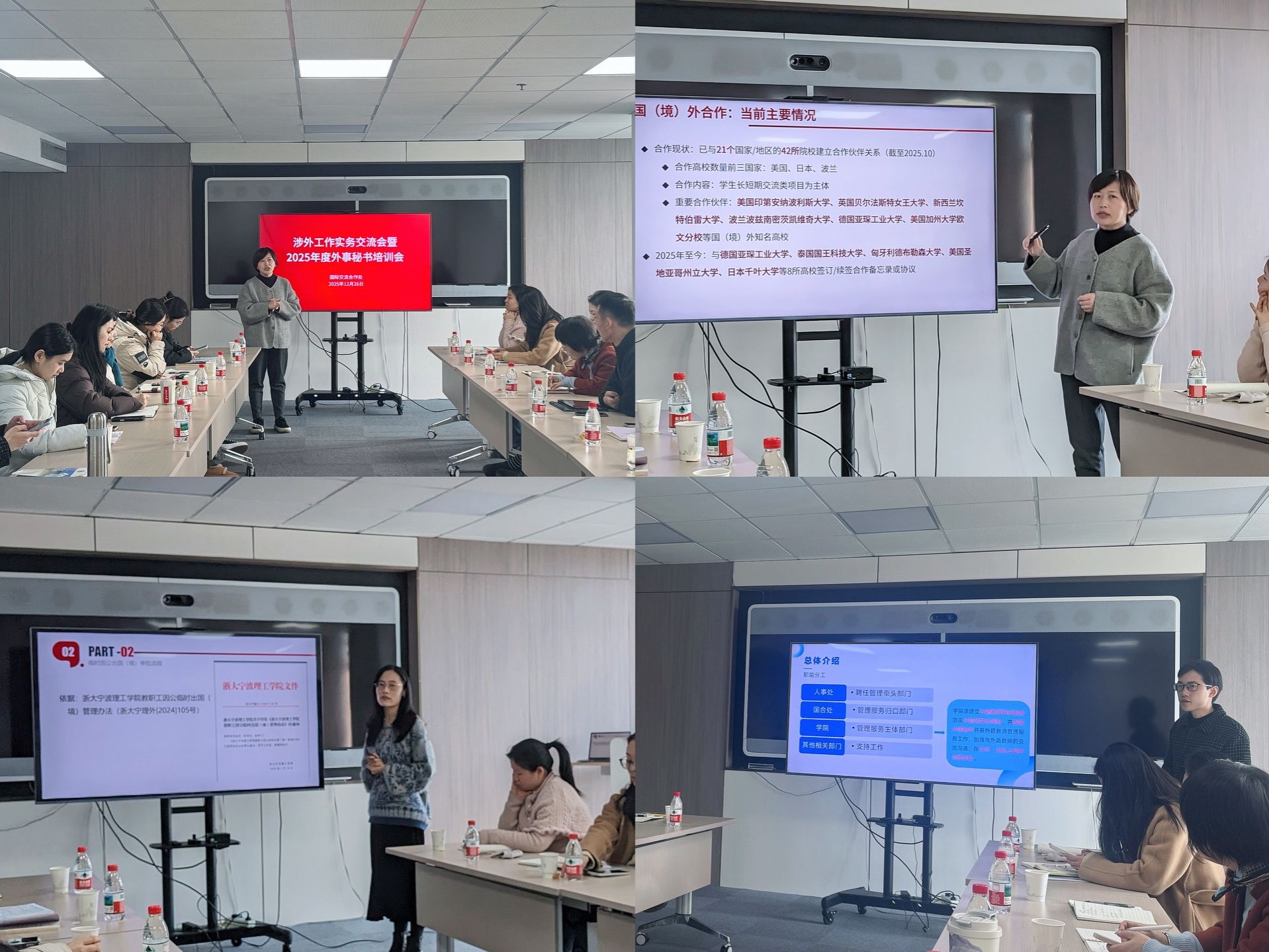 为进一步强化外事管理队伍建设,推进校院两级涉外管理规范化水平及工作效能提升,12月26日上午,国合处组织召开全校涉外工作实务交流会暨外事工作培训会,全体外事秘书参加。