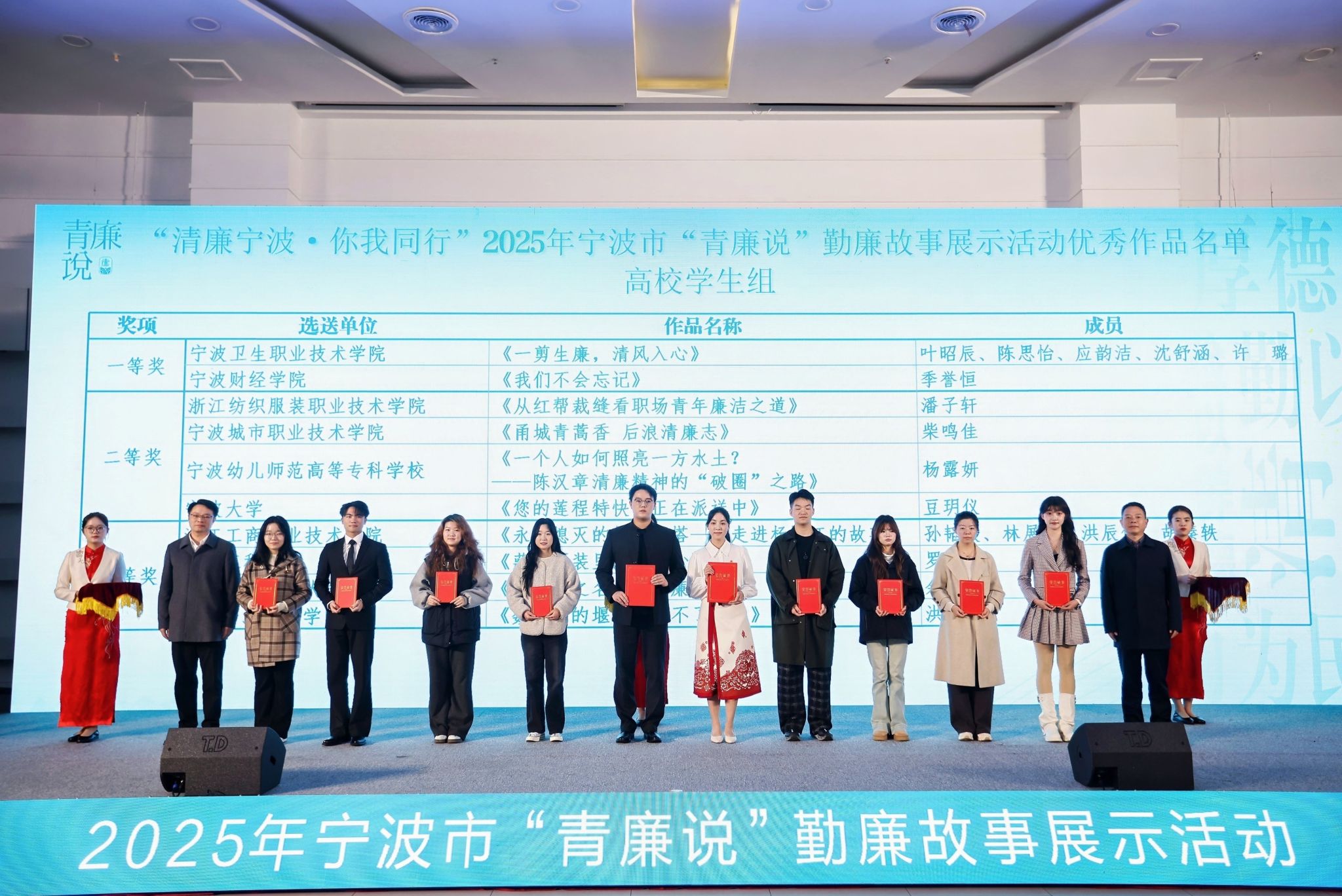 近日,“清廉宁波·你我同行”2025年宁波市“青廉说”勤廉故事展示活动在宁波国际会展中心落下帷幕。由我校团委组织推荐、外国语学院师生精心创作并演绎的作品《数不清的堰板,忘不了的人》脱颖而出,获得高校学生组三等奖。