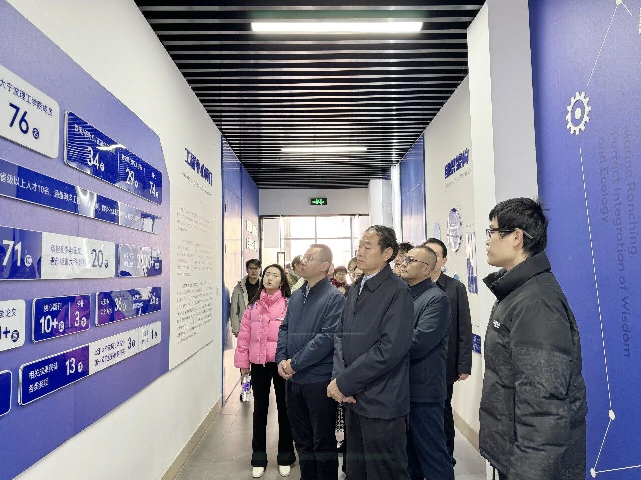 陈峰一行先后参观了我校集成电路研究所、数智临港服务浙江省工程研究中心(筹)及智慧海洋牧场装备技术浙江省工程研究中心,实地考察我校在学科建设与科研应用方面的发展成果。