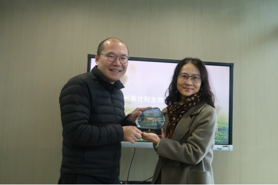为深化校友联络,精准对接企业需求,探索“语言+产业”产学研融合新路径,1月26日,外国语学院执行院长蔡亮、党委书记刘群娣一行前往杭州英仕利生物科技有限公司进行专题调研,并实地参观了浙江大学茶叶研究基地。公司董事长、学院2011届中美英语专业校友夏琛全程热情接待并陪同交流。