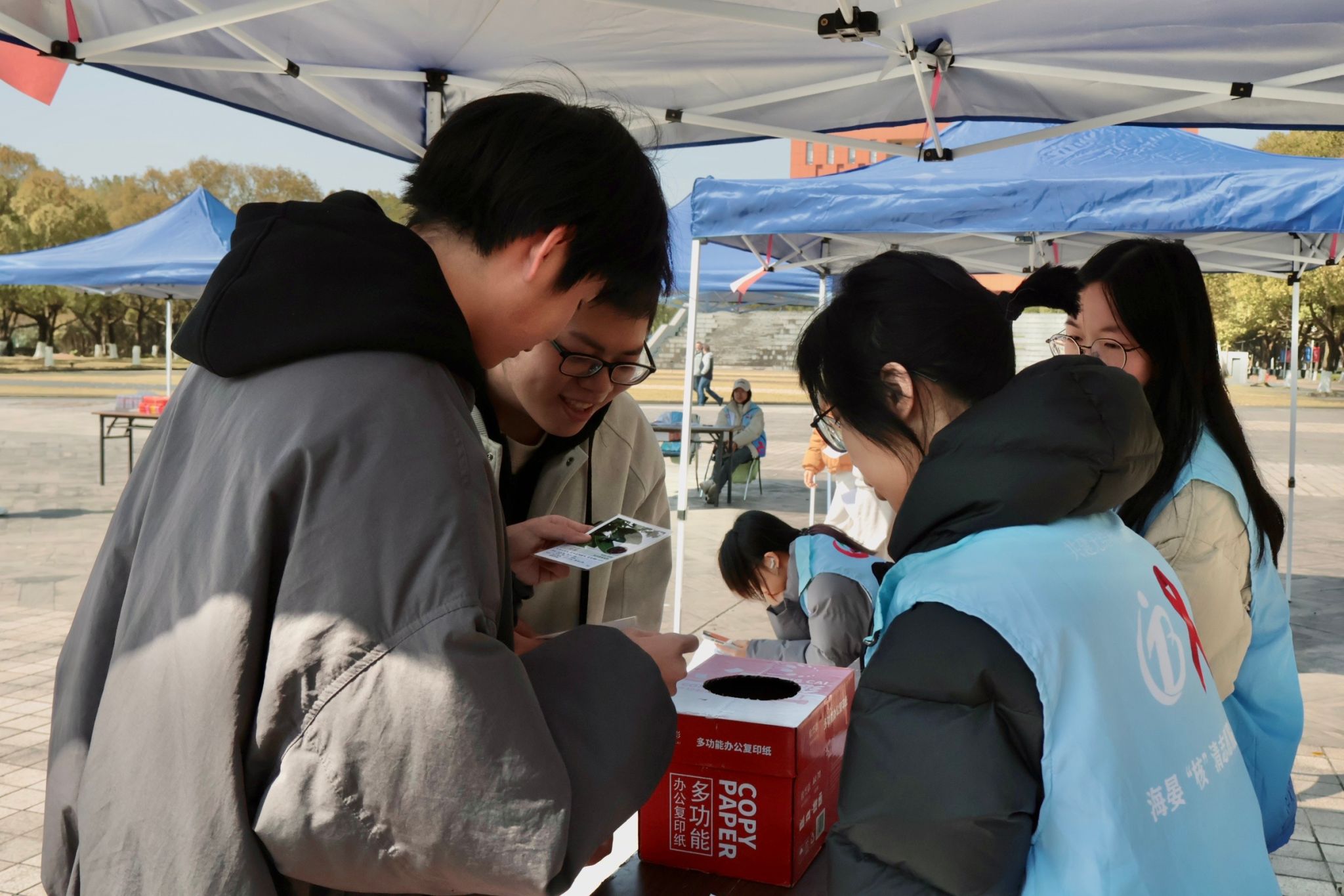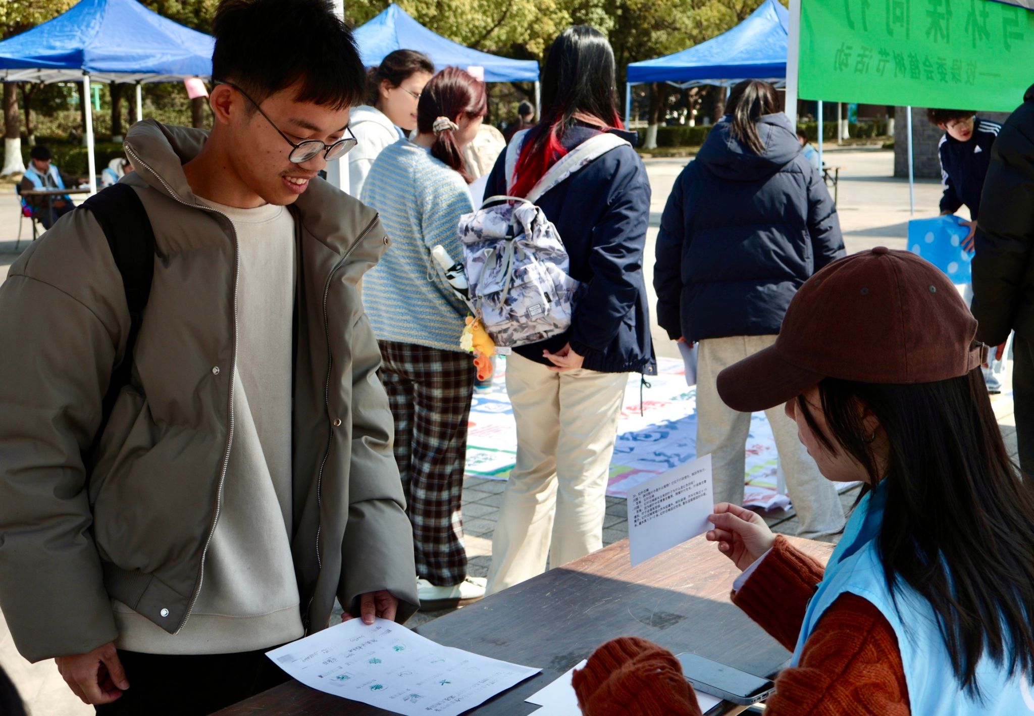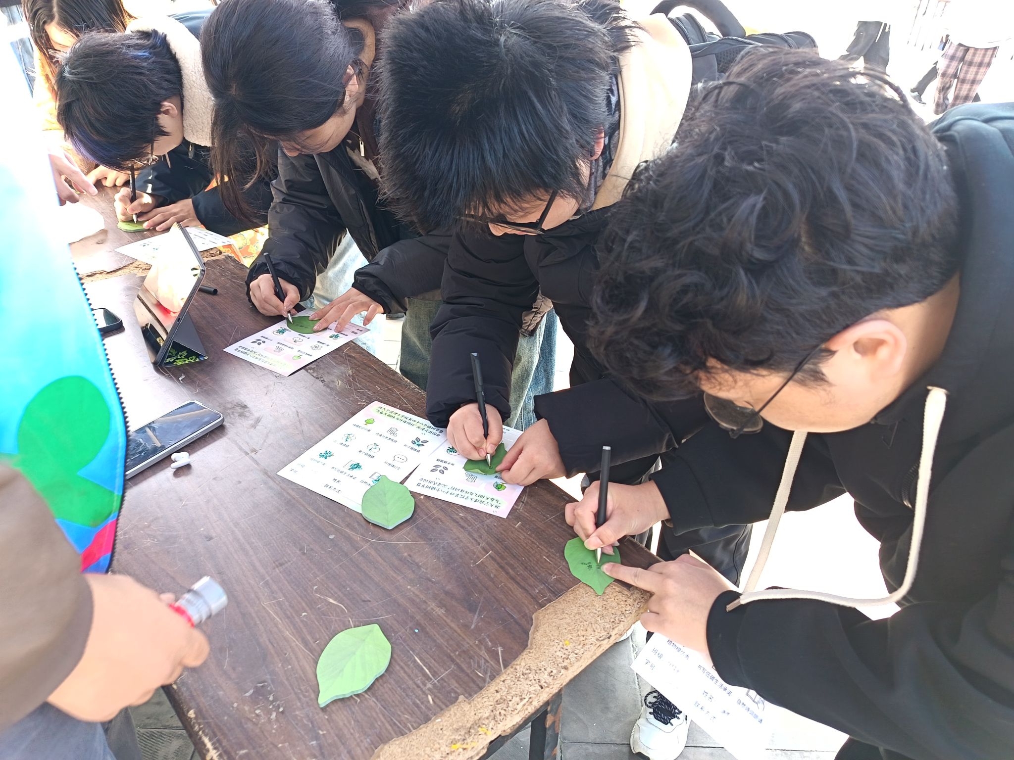 绿植知识问答区前,同学们驻足思考、踊跃作答,从树木习性到生态价值,在一问一答间筑牢生态认知基础。