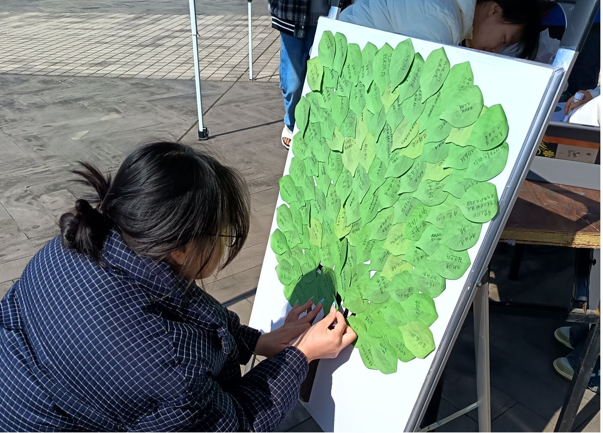 书写低碳生活承诺,在树叶形便签纸上,同学们写下“避免使用塑料袋”“节约用水,缩短淋浴时间”等承诺,拼成一棵绿树,一笔一画皆是对生态环保的坚定决心,承诺树成为校园里一道温暖而有力量的绿色风景线。