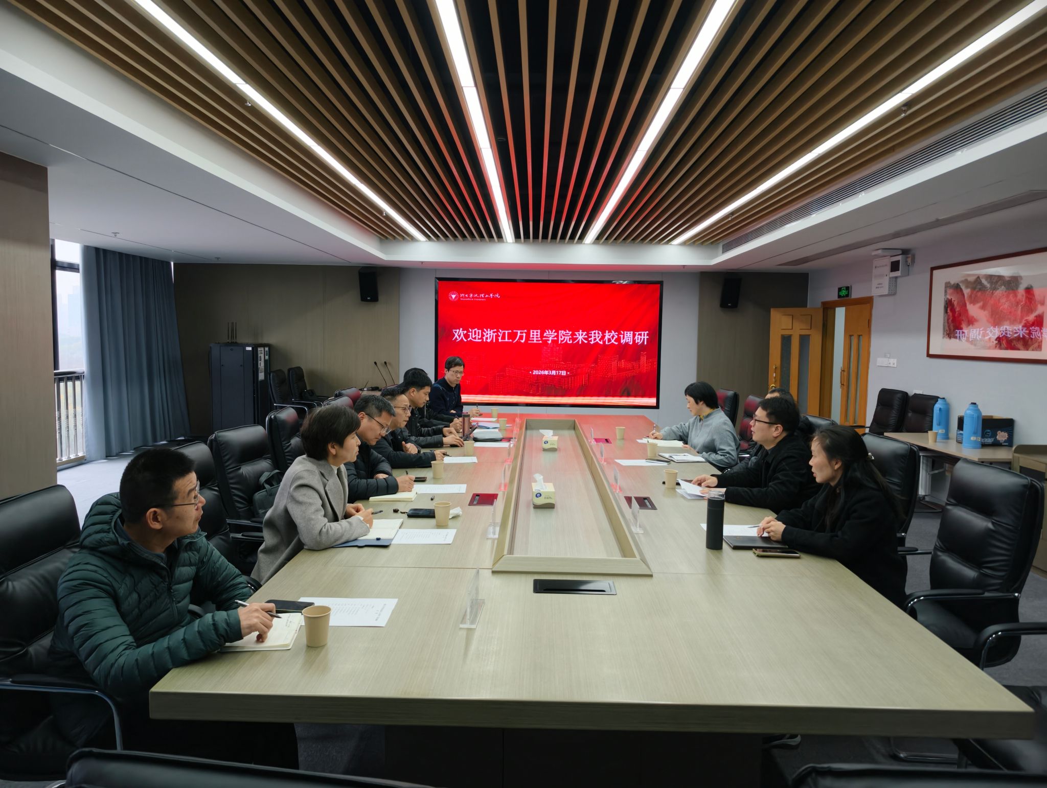3月17日上午,浙江万里学院教务处处长袁勇军一行来校就智慧教学平台建设及使用情况进行专题调研。我校教务处、信息技术中心、评估中心相关负责人和岗位人员参加座谈交流。
