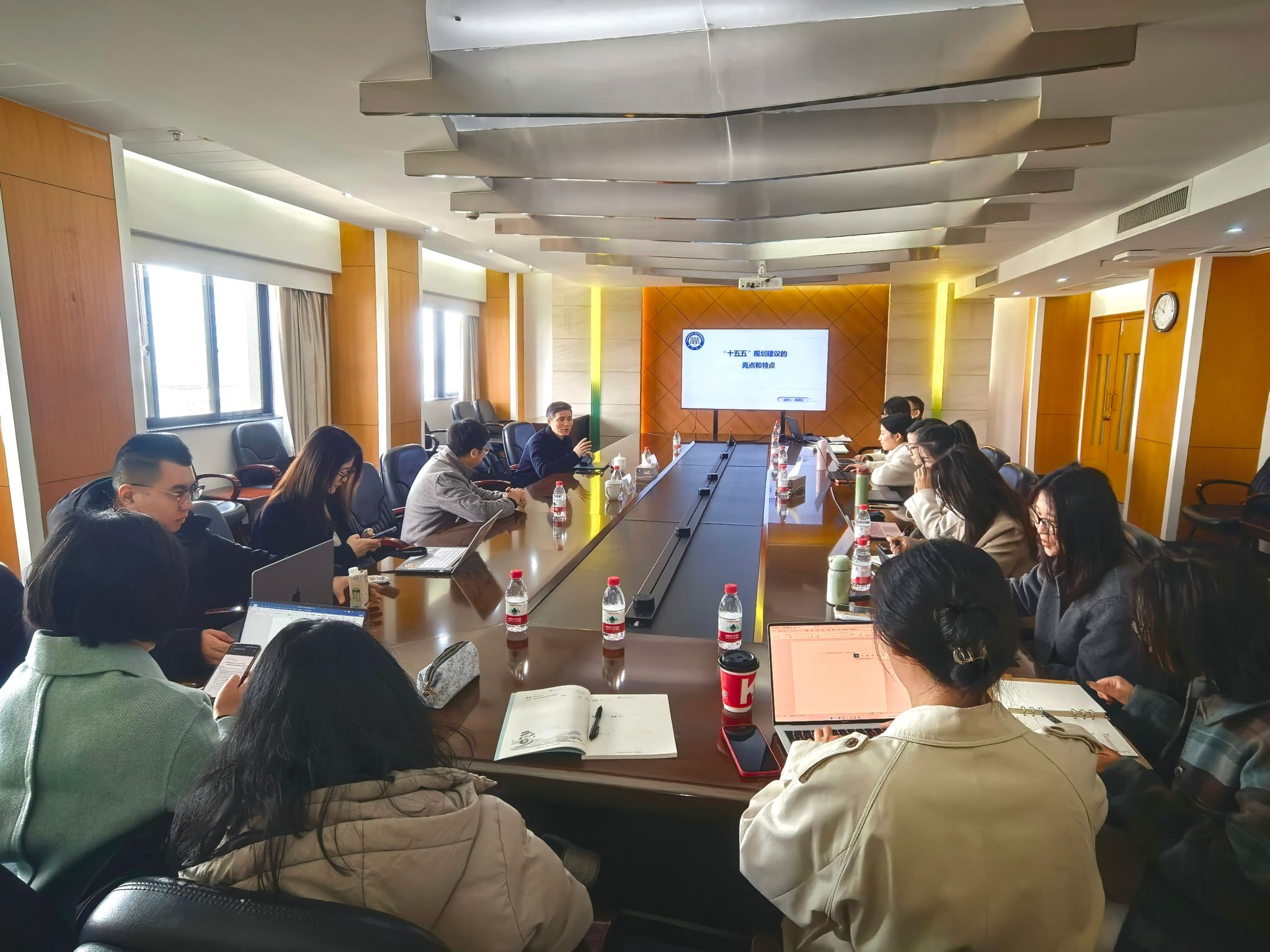 为进一步提升学院教师的学术研究水平与项目申报能力,准确把握国家未来发展宏观方向,3月13日上午,湘潭大学马克思主义学院教授、博士生导师吴家庆应邀来校开展“‘十五五’规划建议的亮点与特点”专题学术讲座,并与青年教师进行深入交流辅导。马克思主义学院、科研处相关负责人和青年教师代表参加交流会。