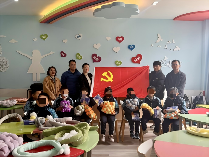 为深入弘扬雷锋精神,践行社会主义核心价值观,彰显高校服务社会、关爱特殊群体的责任担当,2026年3月20日上午,设计学院党委组织由专任教师马超、王萍、贾鑫、姜燚威、华夏组成的教师团队赴宁波市特殊教育中心学校,开展“编织阳光,触摸美好”主题志愿服务活动。本次活动以编织艺术体验为载体,面向视障学生开展互动式美育实践,通过艺术陪伴与手工教学相结合的方式,传递温暖与关怀,营造包容友爱的良好氛围。活动中,老师们还精心准备了暖心礼物,赠送给孩子们。