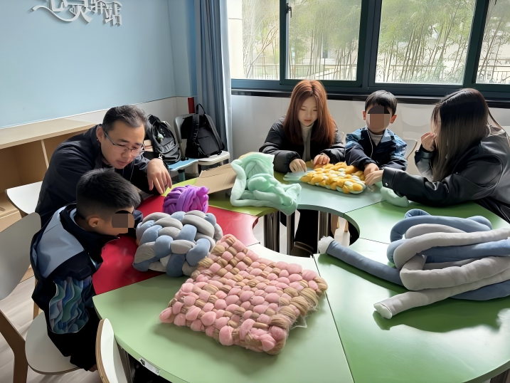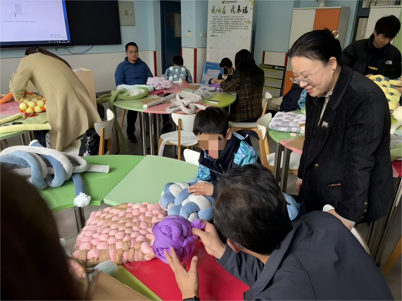 “这个手工让我很开心。”一名参与活动的学生在活动感言中说道。在互动过程中,老师们不仅传授技艺,更通过语言描述、动作引导和情感交流,帮助学生在创作中建立自信,感受来自社会的理解与尊重。