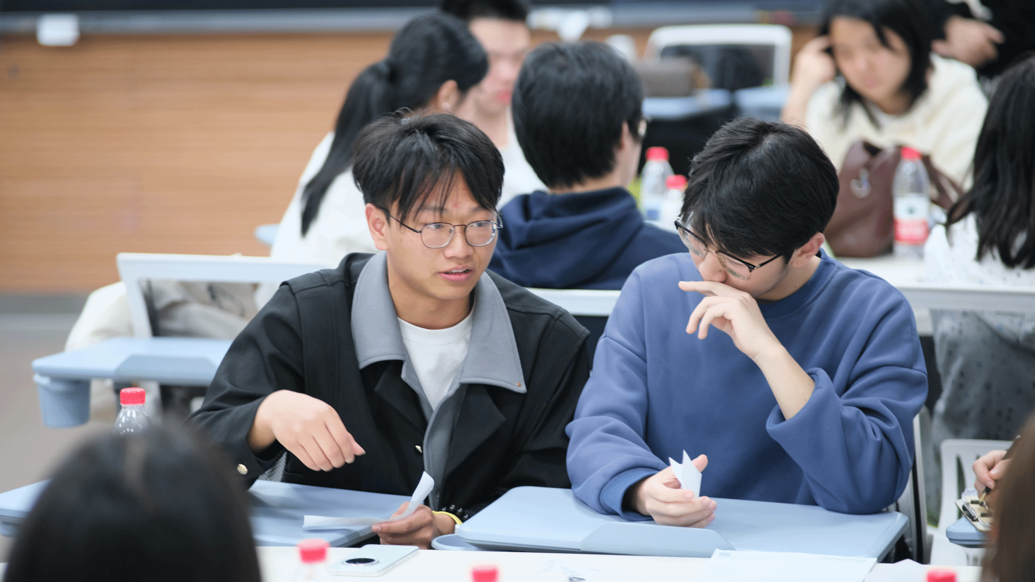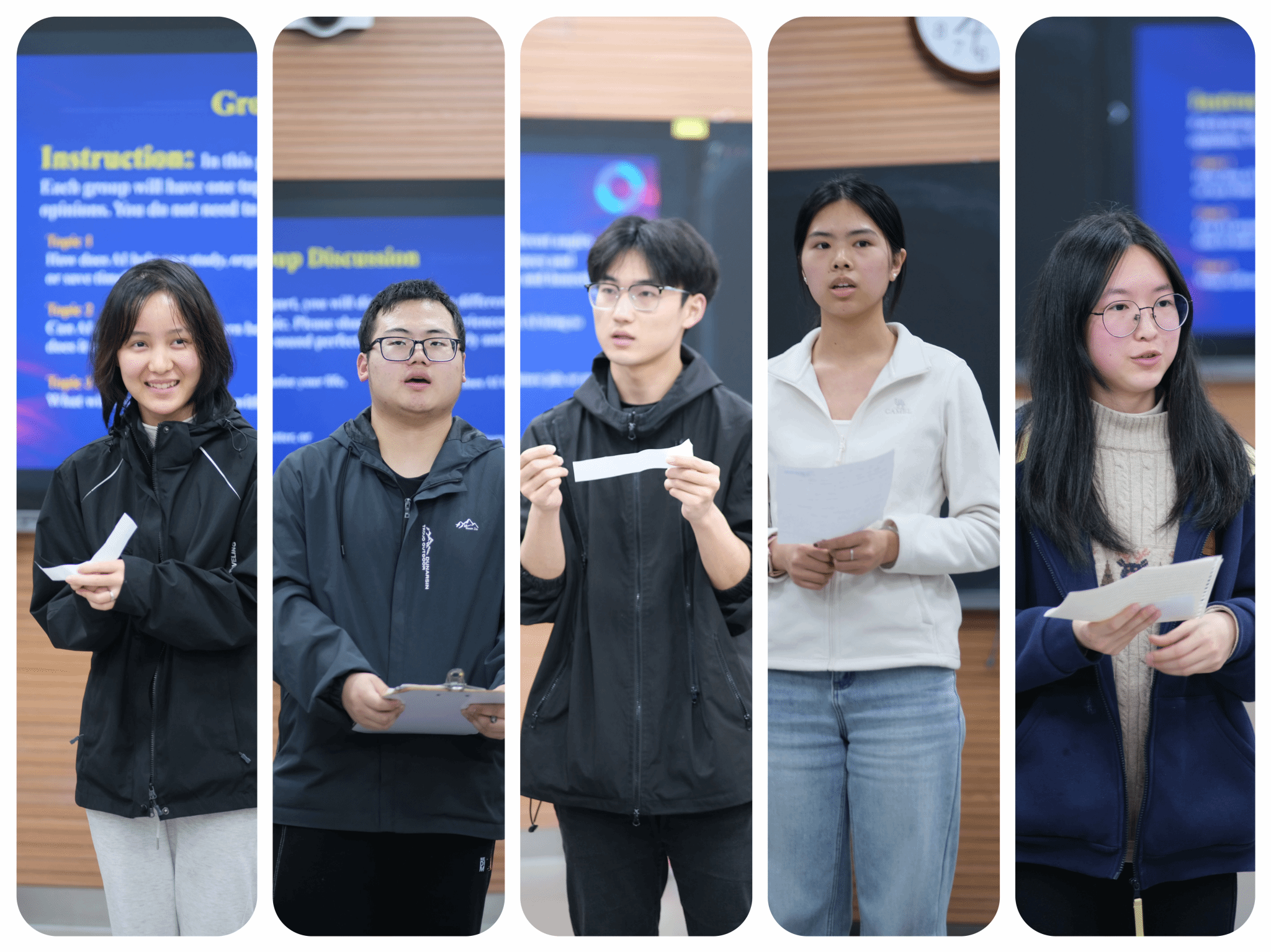 主题研讨环节将活动推向高潮,五组同学分别围绕“AI如何助力学习与生活”、“AI是提升效率还是催生惰性”、“未来AI校园图景”、“AI进校园的潜在问题”及“AI与未来职业发展”五大核心话题展开热烈讨论。从ChatGPT、豆包等AI工具的使用体验,到AI学习与学术诚信的边界;从未来AI校园教学模式的畅想,到数据隐私问题;从专业与AI发展的关联,到未来职场必备的核心能力,同学们各抒己见、思维交锋,多元视角的碰撞使大家对AI的认知更加全面和立体。