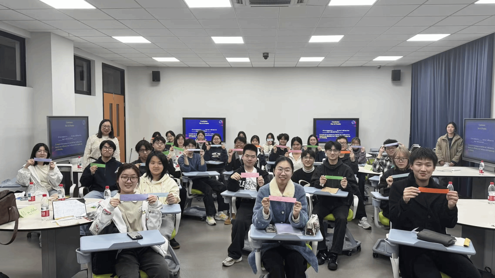 活动尾声,同学们在便利贴上写下属于自己的“AI承诺”,一句句真挚宣言既是对AI与校园共生的深度思考,也是对自身学习态度的郑重坚守,为本次英语角画上了温暖而坚定的句号。