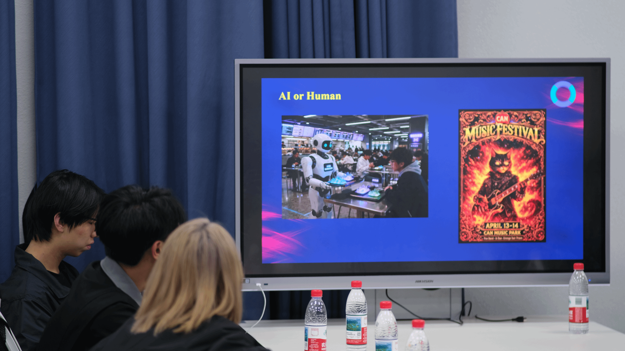 活动中,一场名为“AI or Human?”的破冰游戏迅速点燃了现场气氛。大屏幕上展示出多组图文素材,同学们化身“辨真达人”,争相判断内容来源是人类创作还是AI生成,并逐一阐述判断依据。轻松的互动不仅拉近了彼此的距离,也激发了大家对AI本质的好奇心。