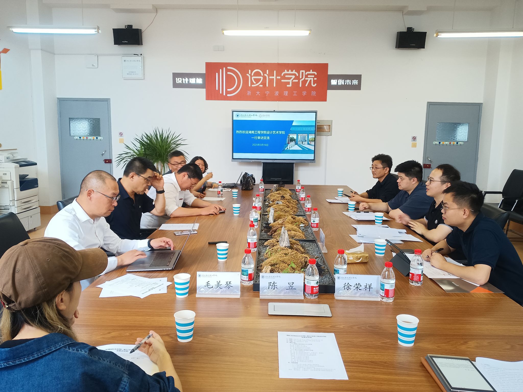 5月16日上午,湖南工程学院设计艺术学院成烁、刘聪哲、刘谜、张淞老师一行四人来访浙大宁波理工学院设计学院,双方在设计学院SE306会议室座谈交流。浙大宁波理工学院设计学院相关负责人及骨干教师参加座谈。