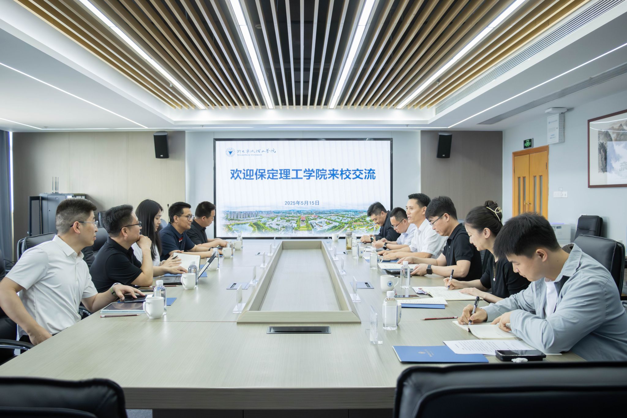 2025年5月15日上午,保定理工学院来我校调研交流。学校党委委员、办公室主任陈斌及相关职能部门负责人陪同参观并座谈,双方围绕本科教学水平合格评估工作的经验做法展开深入探讨。