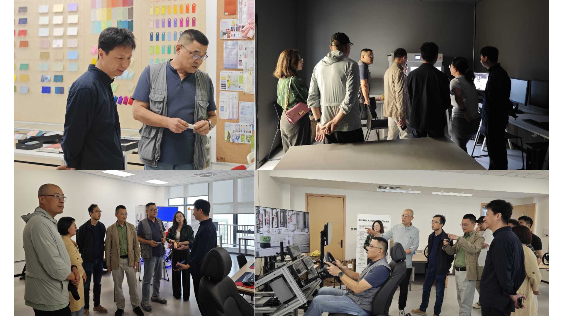 在实地考察环节,调研组系统走访了多模态交互与人因工程实验室、CMF数字化研究创新实验室、智能座舱交互实验室及人工智能辅助设计创新实验室,通过现场演示与案例解析,深入了解了实验室在智能座舱用户体验优化、新材料数字化表征、人机协同设计等领域的产业转化成果,更加明晰了新质实验室体系建设路径。