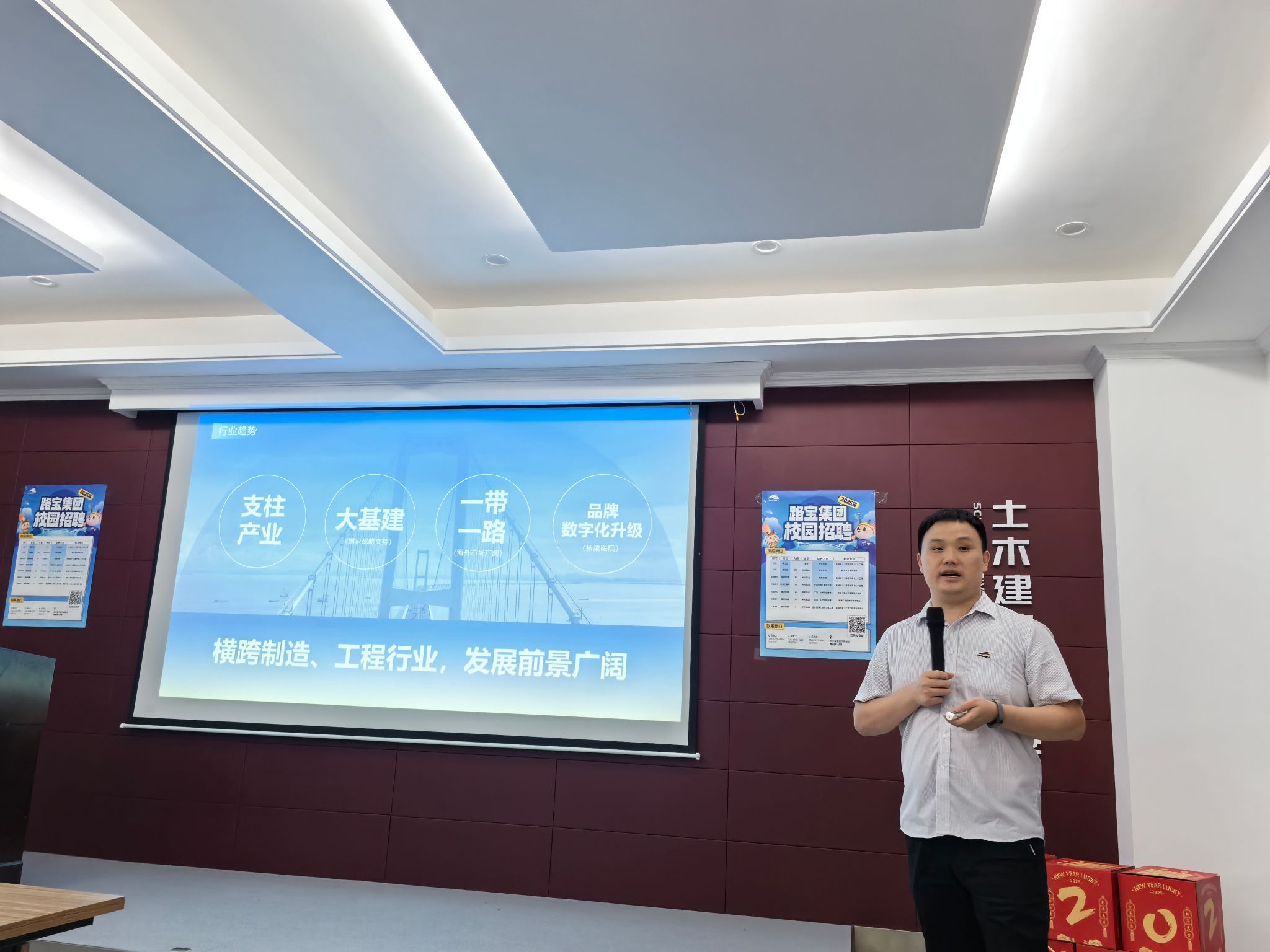 随后,招聘负责人详细介绍了本次招聘的岗位信息,包括管培生、职能部门管理储备等多个岗位,涵盖土木工程、道路桥梁、等多个专业领域,职业发展空间广阔。
