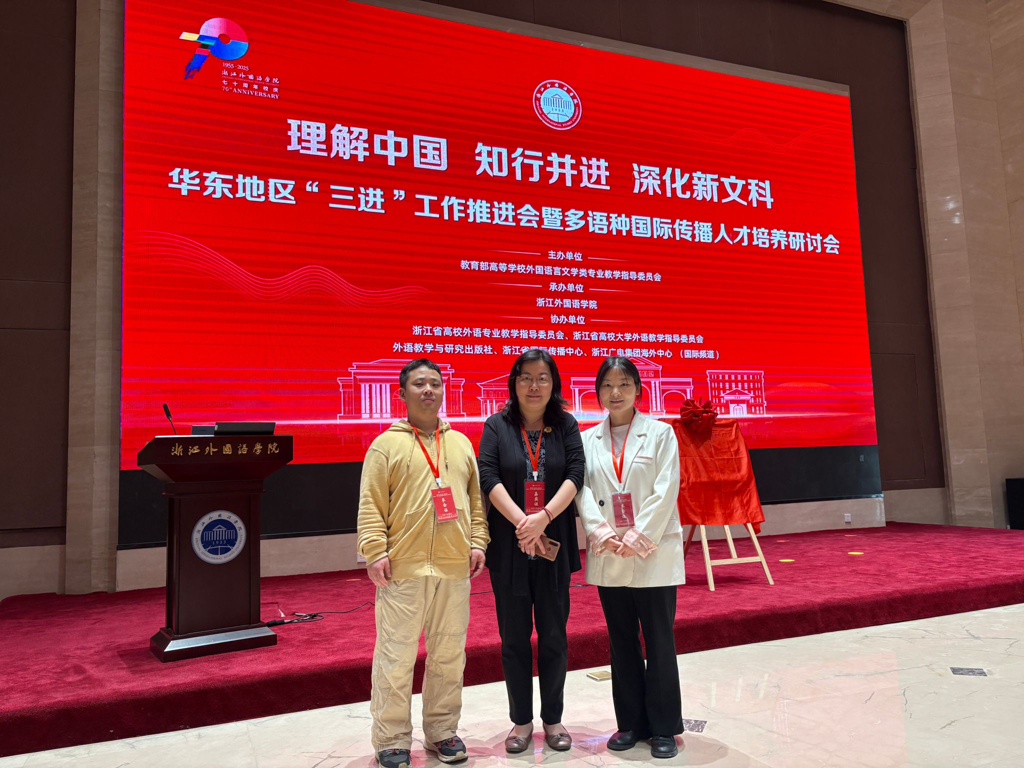 2025年4月11日,华东地区“三进”工作推进会暨多语种国际传播人才培养研讨会于浙江外国语学院隆重举行。我校外国语学院副院长欧琛、教师南二丽与余祎延赴杭参加线下会议。