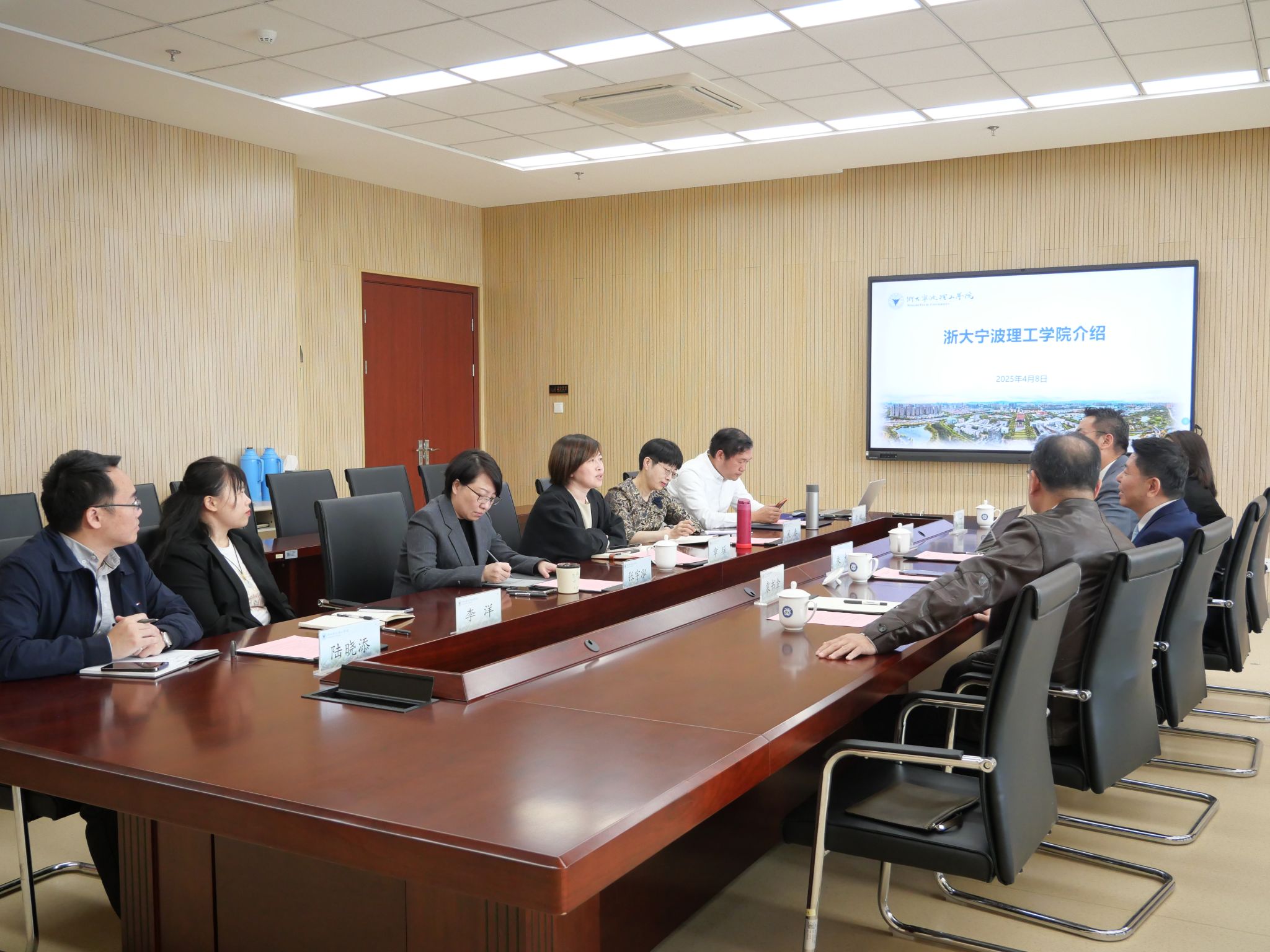 4月8日,宾夕法尼亚大学沃顿上海中心(PWSC)首席执行官、南加大马歇尔商学院中国项目办公室主任朱栩一行来浙大宁波理工学院调研交流,学校副校长鲁东明,国际交流合作处、继续教育学院相关负责人等参加座谈。