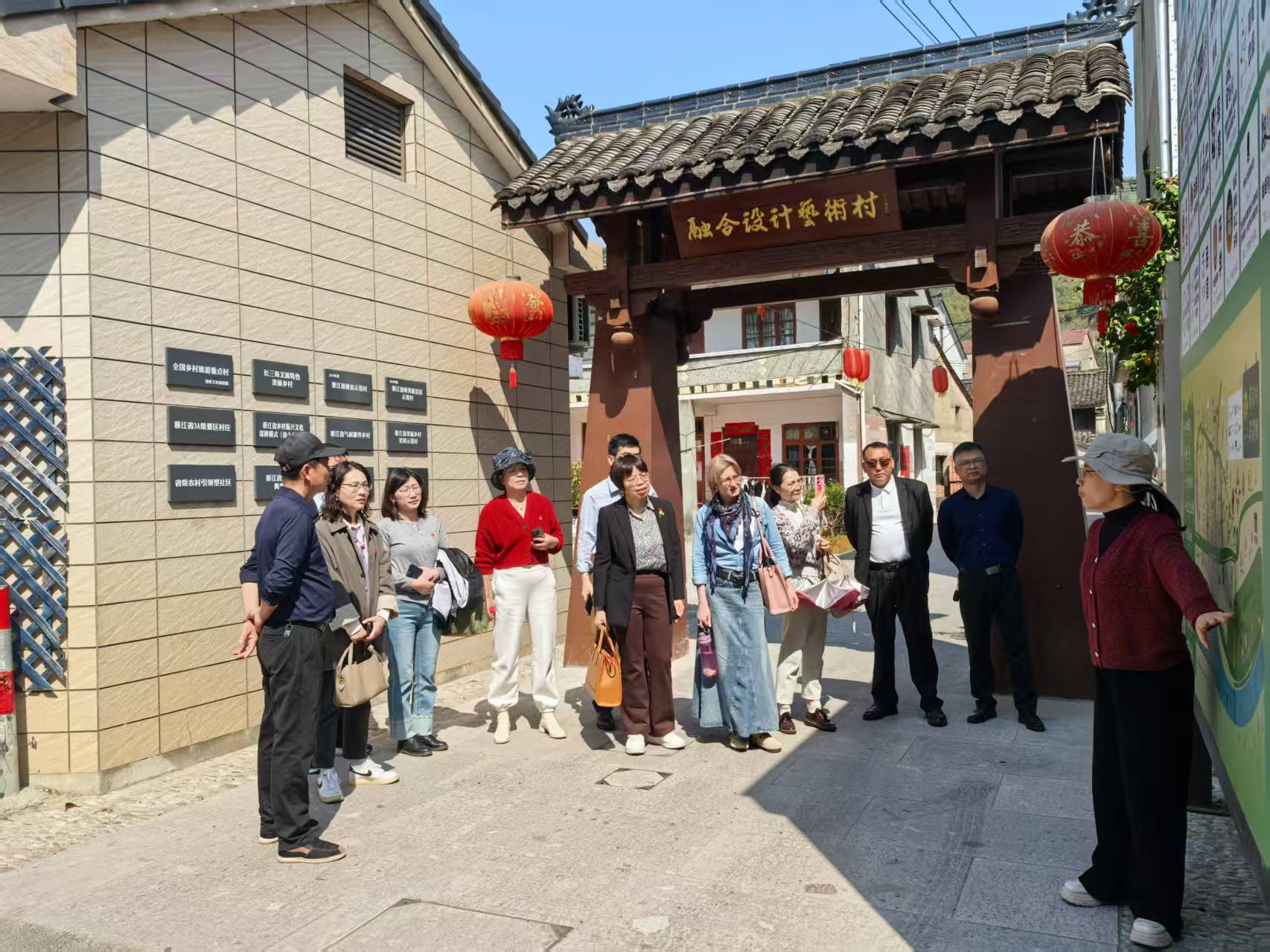 在宁海县大佳何镇副镇长张金鑫,葛家村党支部书记葛万永等村干部的陪同讲解下,调研组一行先后走访了葛家村教授街、“艺起富”共富工坊、仙绒美术馆、玛格达小屋、艺术创富学院及体适能中心建设现场,实地感受乡村艺术文化赋能与产业创新的融合发展成效。自2019年宁海县启动“艺术振兴乡村”工作以来,葛家村因地制宜、先试先行,已打造出40多个艺术共享空间、300多个文创产品,率先探索出了一条新时代新农村发展的新路径,成为浙江省“乡村振兴十大模式”之一,葛家村也成了浙江乃至全国有名的“网红艺术村”。