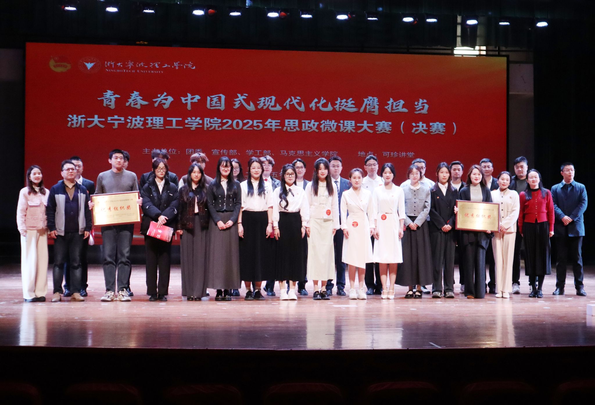 “青春勇担当,奏响中国式现代化强音。”为全面贯彻落实党的二十届三中全会精神,深入贯彻落实习近平总书记关于青年工作的重要思想,3月21日,学校2025年思政微课大赛决赛在可珍讲堂举行。宁波财经学院马克思主义学院副院长、党委副书记姜帆,学校团委书记、党委宣传部副部长聂迎娉,党委学工部副部长张腾、教务处副处长徐升槐、马克思主义学院党委副书记、纪委书记任凯担任比赛评委。