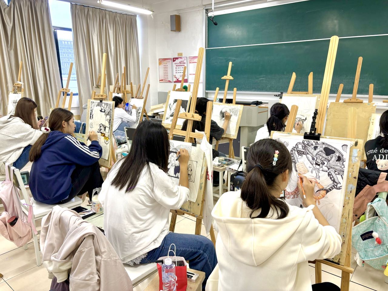 在创作过程中,鲁微微老师引领同学们,在传统素描的基础上,采用多样化的表现手段,培养学生的发散性思维和创意思维能力。从构图的设计到线条的运用,从对文化内涵的挖掘到情感的表达,鲁老师都给予了同学们耐心的指导和专业的建议,引导同学们深入了解象山文化,用艺术的形式展现周边人文的魅力,让自己的每一幅作品都充满了生命力。
