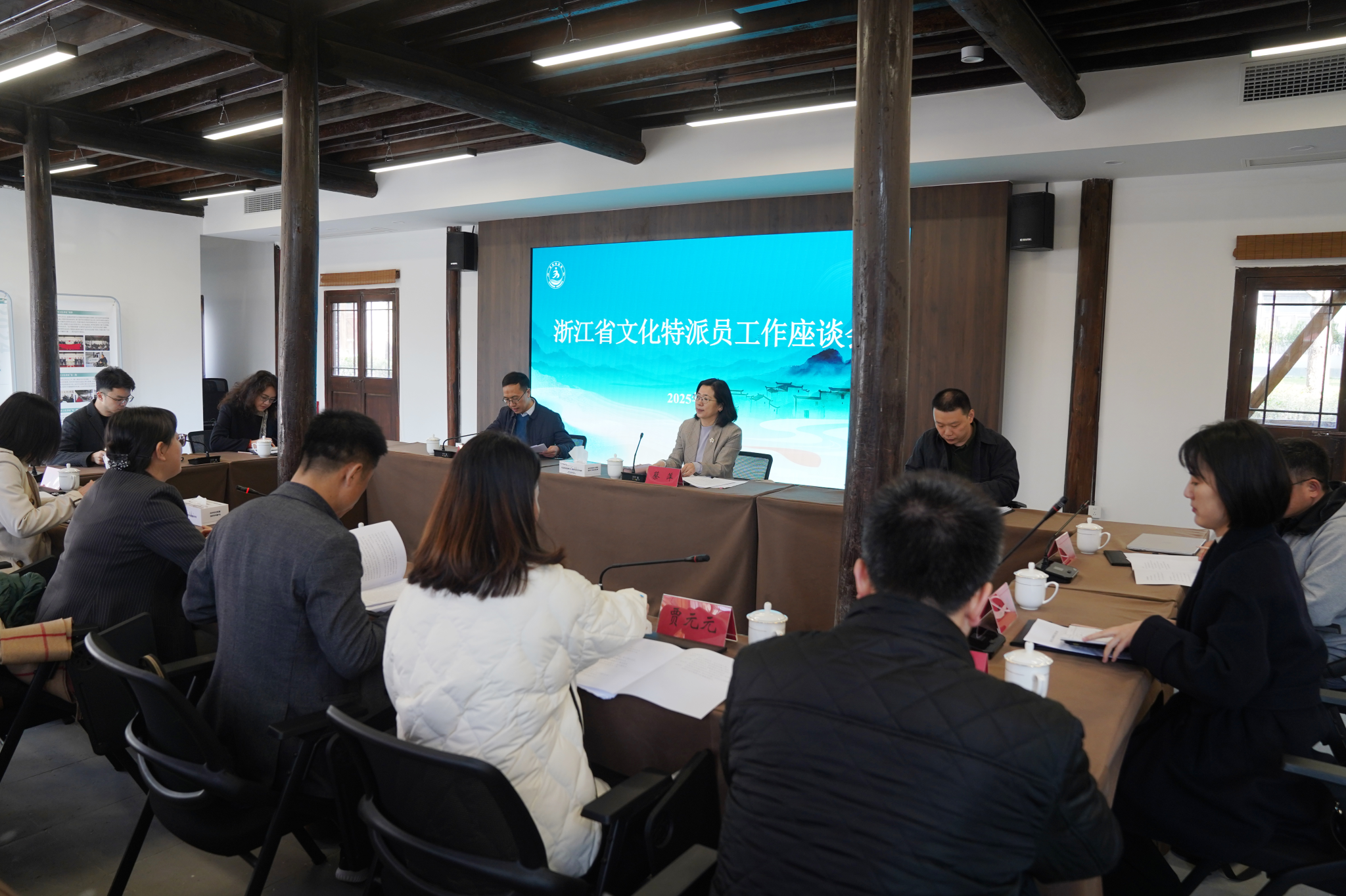 2025年3月18日,浙江省文化特派员工作座谈会在杭州市拱墅区文化特派员之家召开。文化和旅游部政策法规司、浙江省委宣传部领导出席会议。我校市级文化特派员桂劲松老师作为全省文化特派员四名代表之一发言,其扎根乡村推动文化振兴的实践成果获与会领导高度认可。