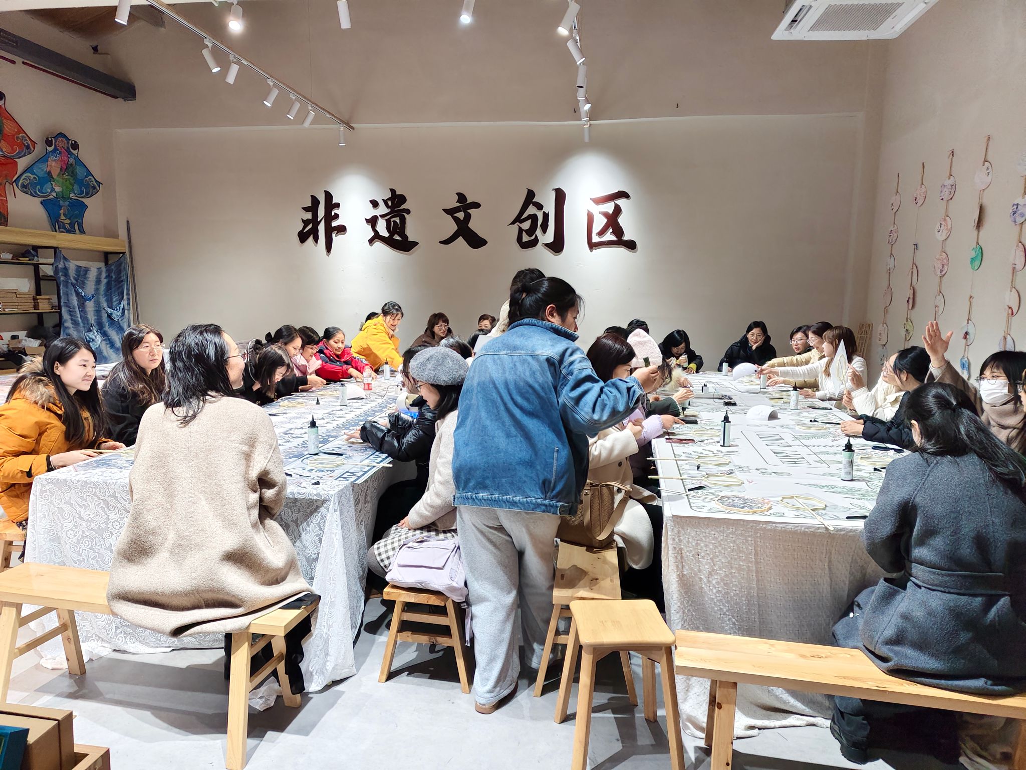 活动当天,先是前往非遗文创馆进行美学手作,大家以“桃花锦鲤流水扇”制作为主题,在专业老师指导下,将象征福运的桃花与锦鲤融入扇面设计。染色、拼接、装裱间,传统技法与现代创意碰撞,欢声笑语中,一件件寓意吉祥的手工艺品跃然成型。“在节日里亲手制作非遗艺术品,既有趣又有意义!”一位老师感慨道。