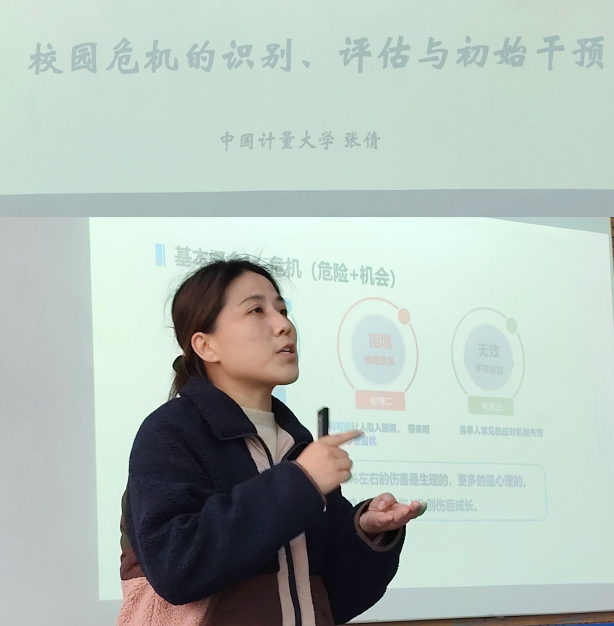 为进一步贯彻落实学校“三全育人”理念,提升心理育人队伍的危机识别和干预能力,构建积极健康的校园环境,2月27日下午学工部心理健康教育咨询中心组织开展了心理健康教育专题培训。本次培训由中国计量大学心理健康教育中心张倩老师主讲,辅导员、专兼职心理咨询师、宿管员、后勤、保安参加。