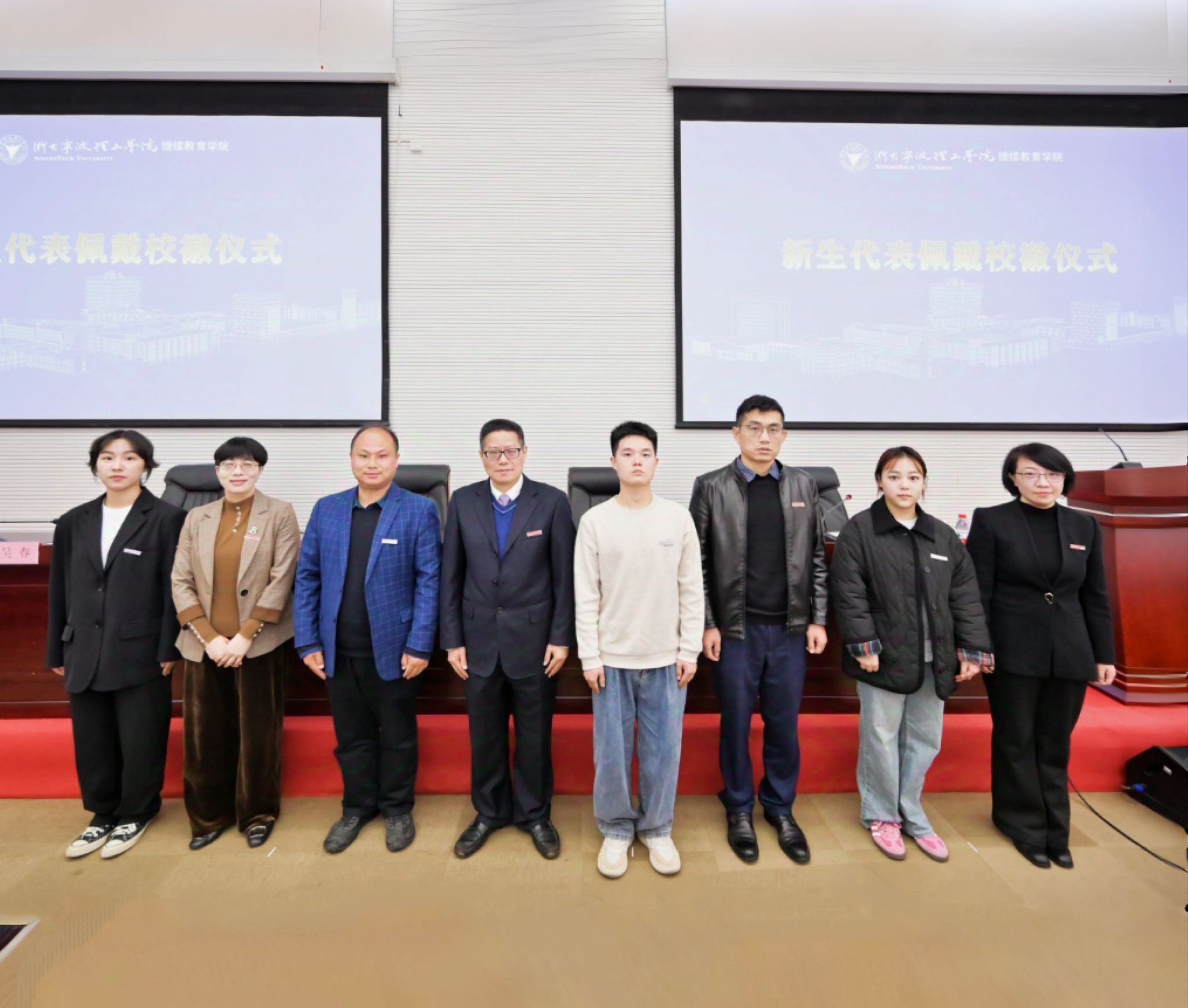 活动中,出席领导共同为新生代表佩戴校徽,代表新生们正式成为“浙大宁理”大家庭的一员。