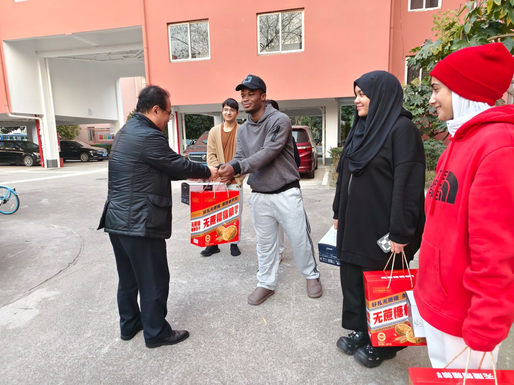 随后,陈欣一行来到宿舍看望了假期留校的国际学生。他们来自不同的国家和地区,因为各种原因选择留在学校度过这个特殊的春节。陈欣与国际生们亲切交流,询问了他们的学习、生活情况,以及对中国传统文化的体验感受。他鼓励国际学生们要珍惜在中国的学习机会,多了解中国文化,成为中外文化交流的桥梁。同时,他也叮嘱学校要切实做好留校国际学生的各项保障工作,让他们感受到家的温暖。国际学生们对市教育局的关心表示非常感动,纷纷表示将努力学习中文和专业知识,不负众望。