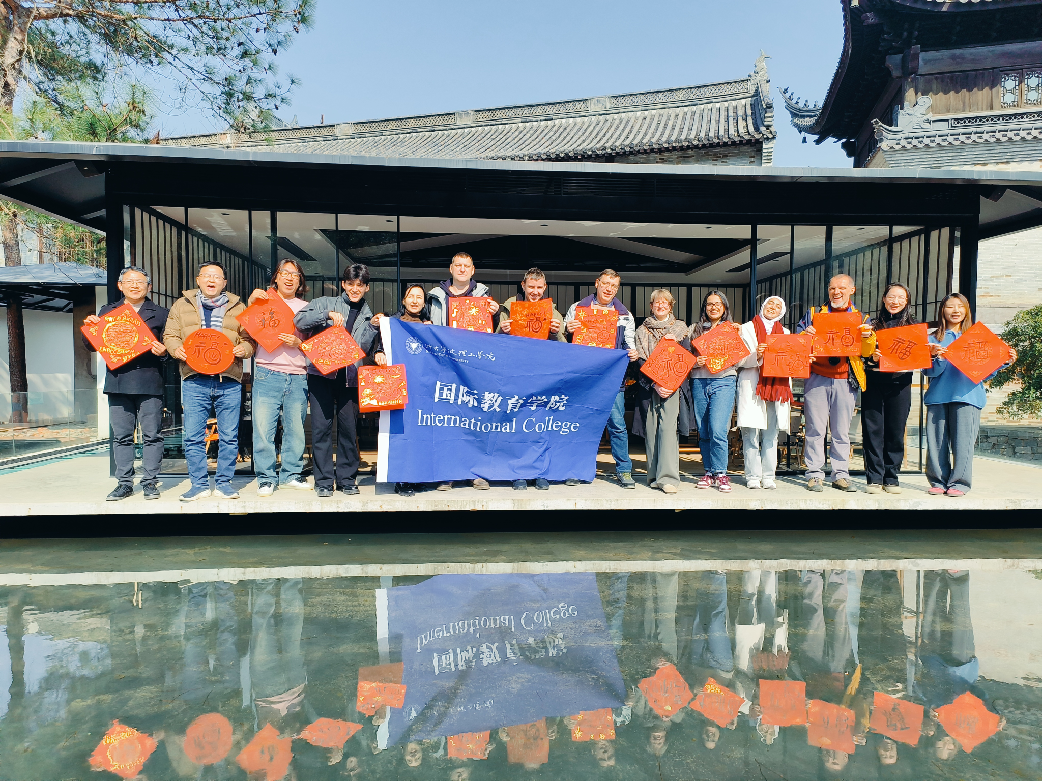 2025年1月20日,时值大寒时节,农历蛇年即将到来,浙大宁波理工学院外籍师生一行来到了雪窦山核心景区的东山村,参加松慈文旅精心安排的“书山有路”现代书艺迎春雅集活动。设计学院、国际教育学院、外国语学院、招就处等学院部门负责人一同参与。