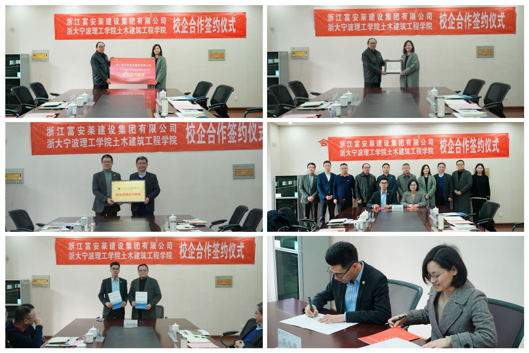 1月8日上午,土建学院“砼心·富安莱”奖助学金捐赠仪式在SA306会议室举行。浙江富安莱建设集团有限公司董事长何文康一行,土建学院、学校校友联络办公室相关负责人,学校房地产校友联谊会会长谢翔哲出席活动。