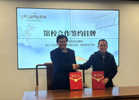 2024年12月28日,浙大宁波理工学院外国语学院、国际教育学院与余姚市文保所在梨洲文献馆开启姚江文化国际传播基地共建签约仪式,正式建立“姚江文化国际传播基地”,并设立“姚江文化海外文献工作室”。这一合作标志着浙大宁波理工学院外国语学院、国际教育学院与余姚市文保所合作开展姚江文化海外文献的整理、征集、传播和研究等工作。