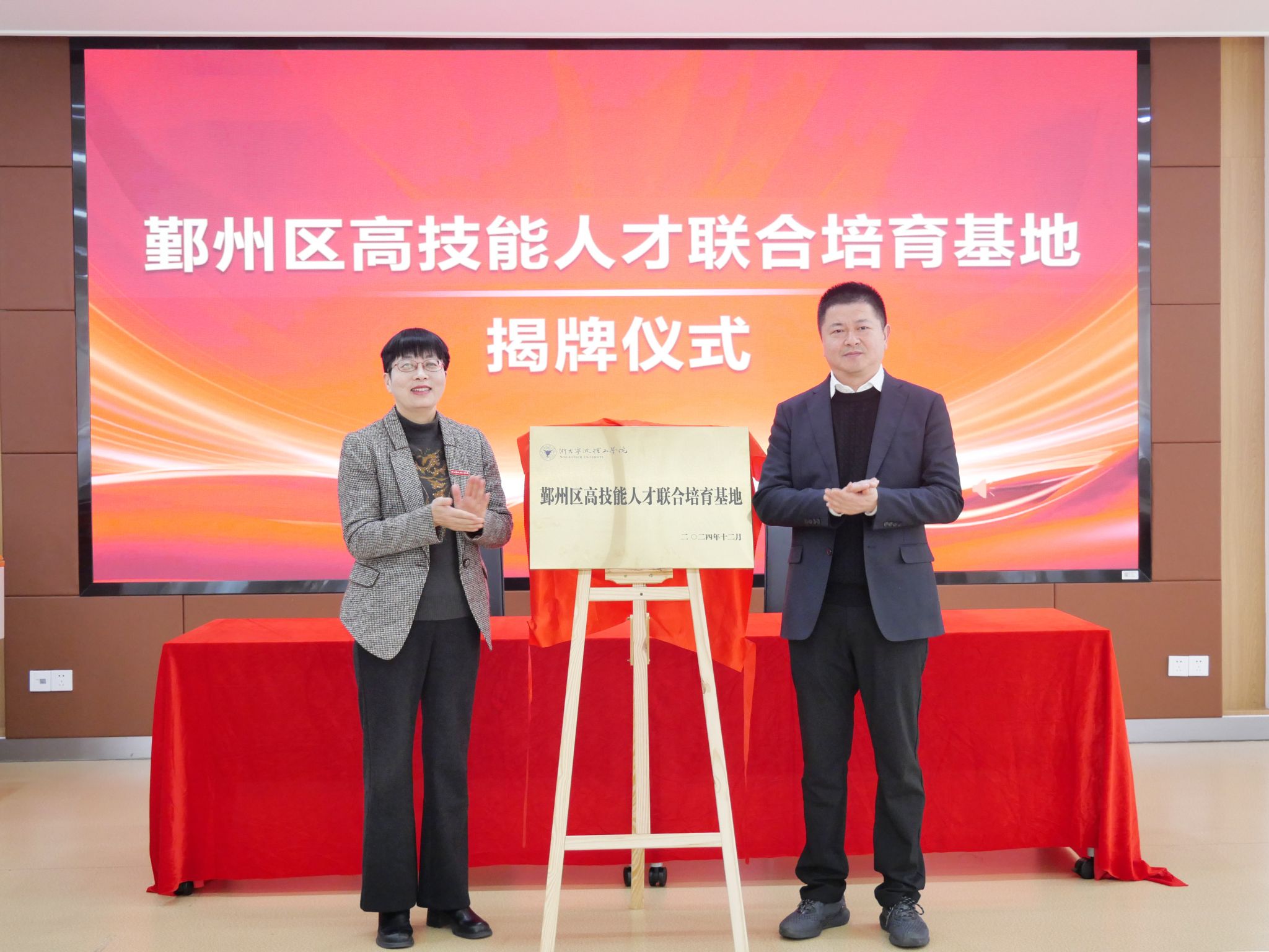 为深入贯彻落实国家关于加强新时代高技能人才队伍建设的战略,推动高技能人才培养和发展,12月20日,宁波市鄞州区人力资源和社会保障局与浙大宁波理工学院共同举办“鄞州区高技能人才联合培育基地”成立暨揭牌仪式。