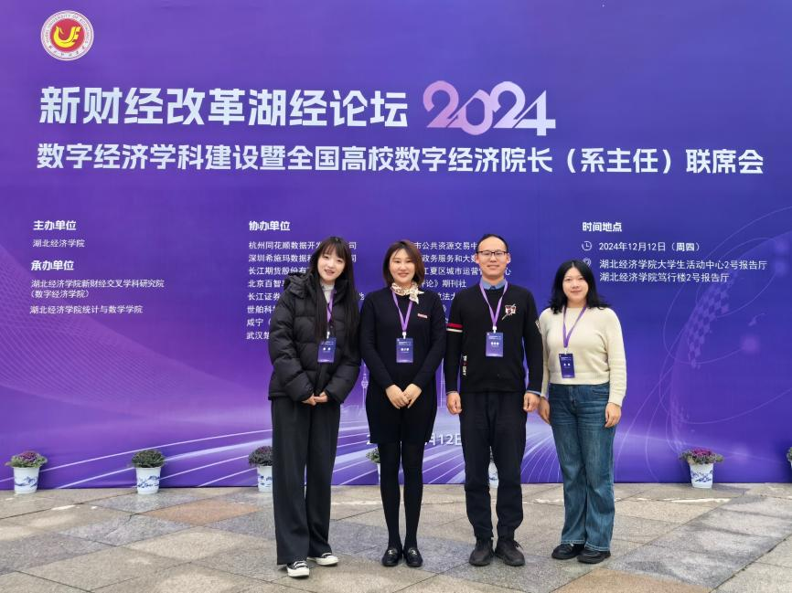 12月12日,学校商学院学术副院长赵小睿副教授带领数字经济系晁嵩蕾副教授、吴桐博士、姜妍博士参加“新财经改革湖经论坛(2024):数字经济学科建设暨全国高校数字经济院长(系主任)联席会”,与来自中国人民大学、南京大学、上海财经大学、对外经济贸易大学、中南财经政法大学等30余位嘉宾围绕新财经改革和数字经济人才培养、学科建设、科研创新、产学研合作等核心议题展开深入交流与探讨。