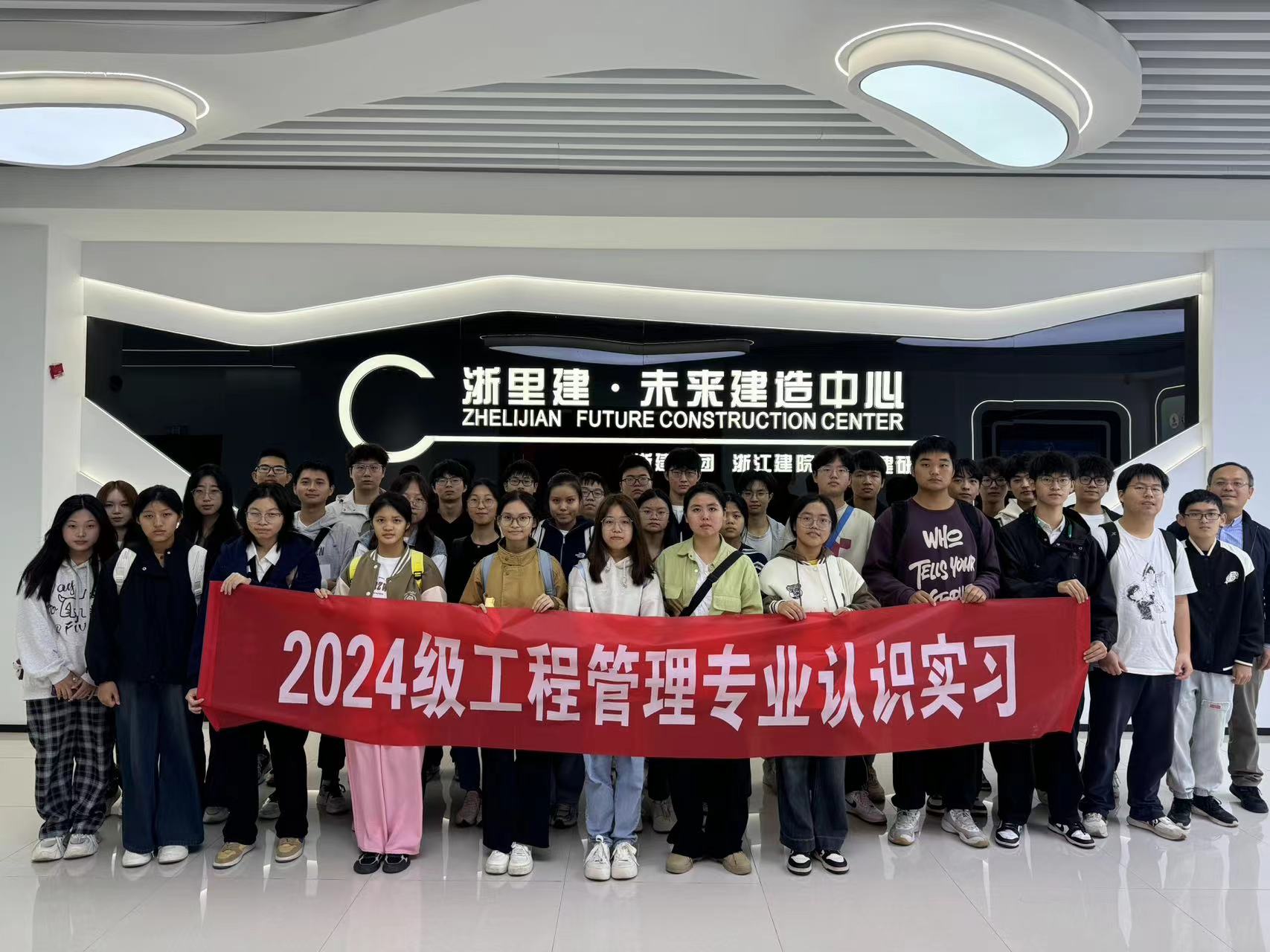 2024年10月至12月,智能建造系依托《智能建造专业认识实习》和《工程管理专业认识实习》课程,精心组织智能建造和工程管理两个专业共82名大一本科新生,开展了为期三个月的专业认识实习活动。本次专业实习活动协调了杭州、宁波两市共五家代表性企业或项目,由智能建造系多位教师带队,利用周末先后走访了宁波甬科交通工业有限公司的未来工厂、杭州冠力智能科技有限公司的混凝土3D打印工厂、浙江建设职业技术学院的浙里建·未来建造中心、中天建设集团宁波鄞州曼哈顿大厦项目部、宁波建工工程集团总部等地,一同亲身感受工程建造的前沿技术和创新成果,从而深入理解并传承大国工匠精神。同时,智能建造系还以我校承办的“浙江省第八届工程管理学术论坛”为契机,组织学生们近距离聆听来自高校、企业的专家报告,拓宽视野,提升专业素养。
